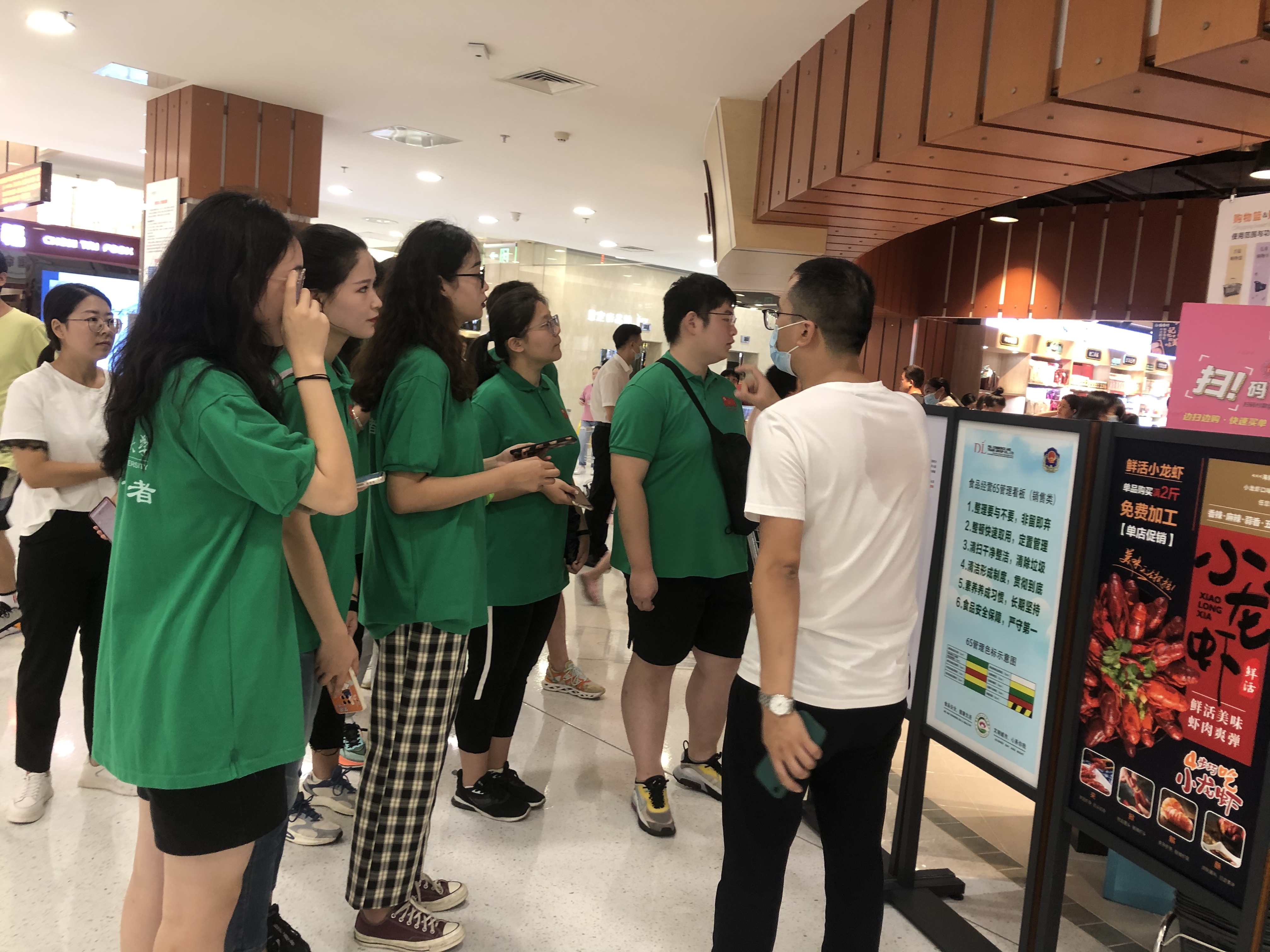 早上10点的胖东来广场已是车水马龙、人声鼎沸。不同于其他大型商场门前广告和宣传的吵闹,胖东来的低调内敛让人感到熨帖舒适。走进商场,迎面走来的工作人员都热情洋溢,如沐春风的笑容感染着每一个顾客。在参观中,适用于不同群体的购物车、设备齐全的母婴室、极具人性化设计的卫生间、随处可见的缺货登记表、自取的免费冰块等,都让队员们感受到胖东来不是把商品销售给客户,而是把幸福传递给客户。对接实践小组的工作人员介绍,胖东来超市为保证果蔬类食材的新鲜,实施折价措施、无条件退货和到货通知等服务,这在其他的超市是不曾有的。
