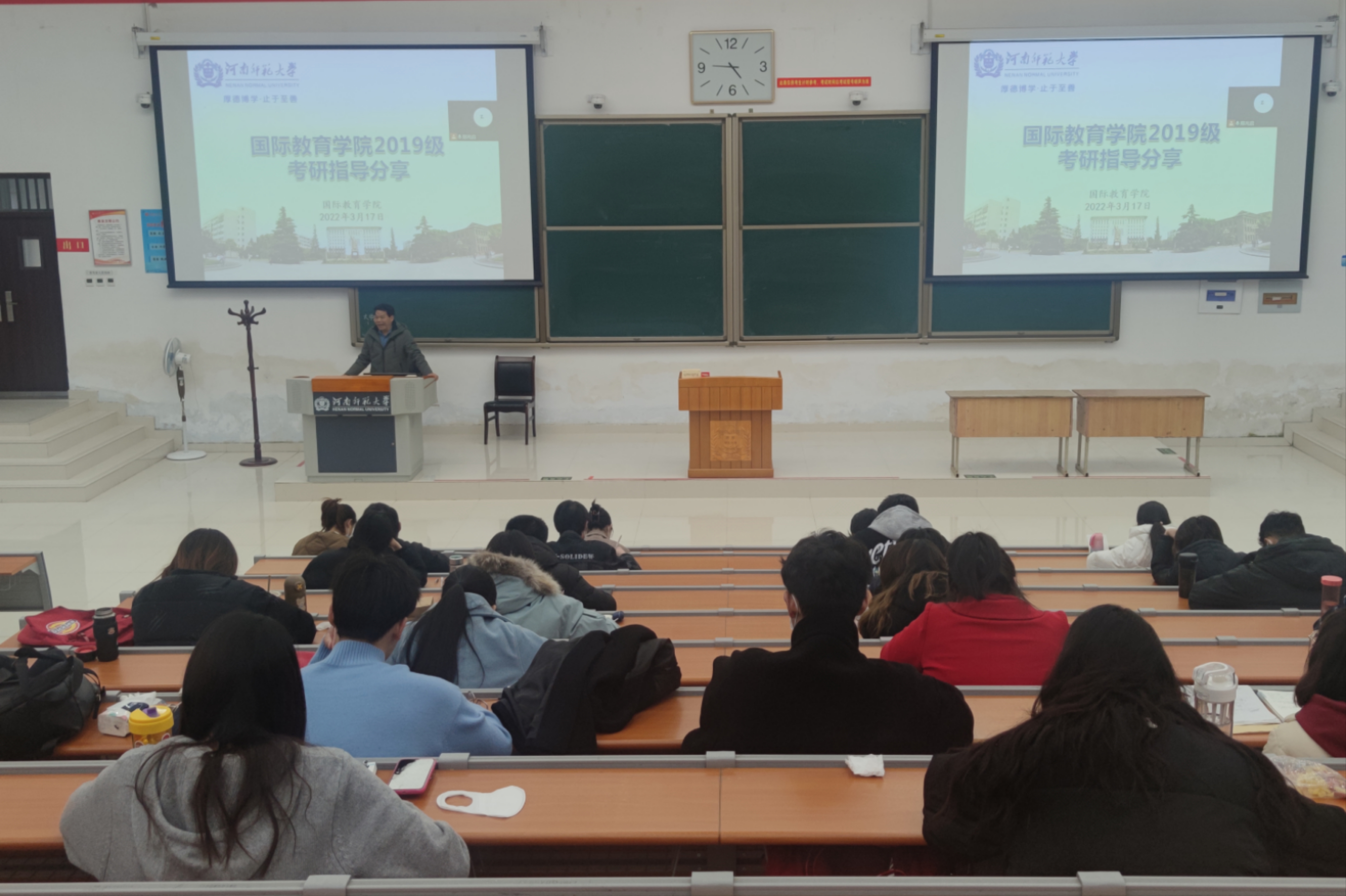 为帮助同学们更好地备战考研,更加全面了解考研要领、把握考研规律,3月17日下午,国际教育学院在文昌楼104教室举办考研指导专题讲座,腾讯会议同步直播。讲座由校网络中心副主任梁书斌主讲,学院2019级专兼职辅导员和全体学生线上和线下同时参加本次讲座。