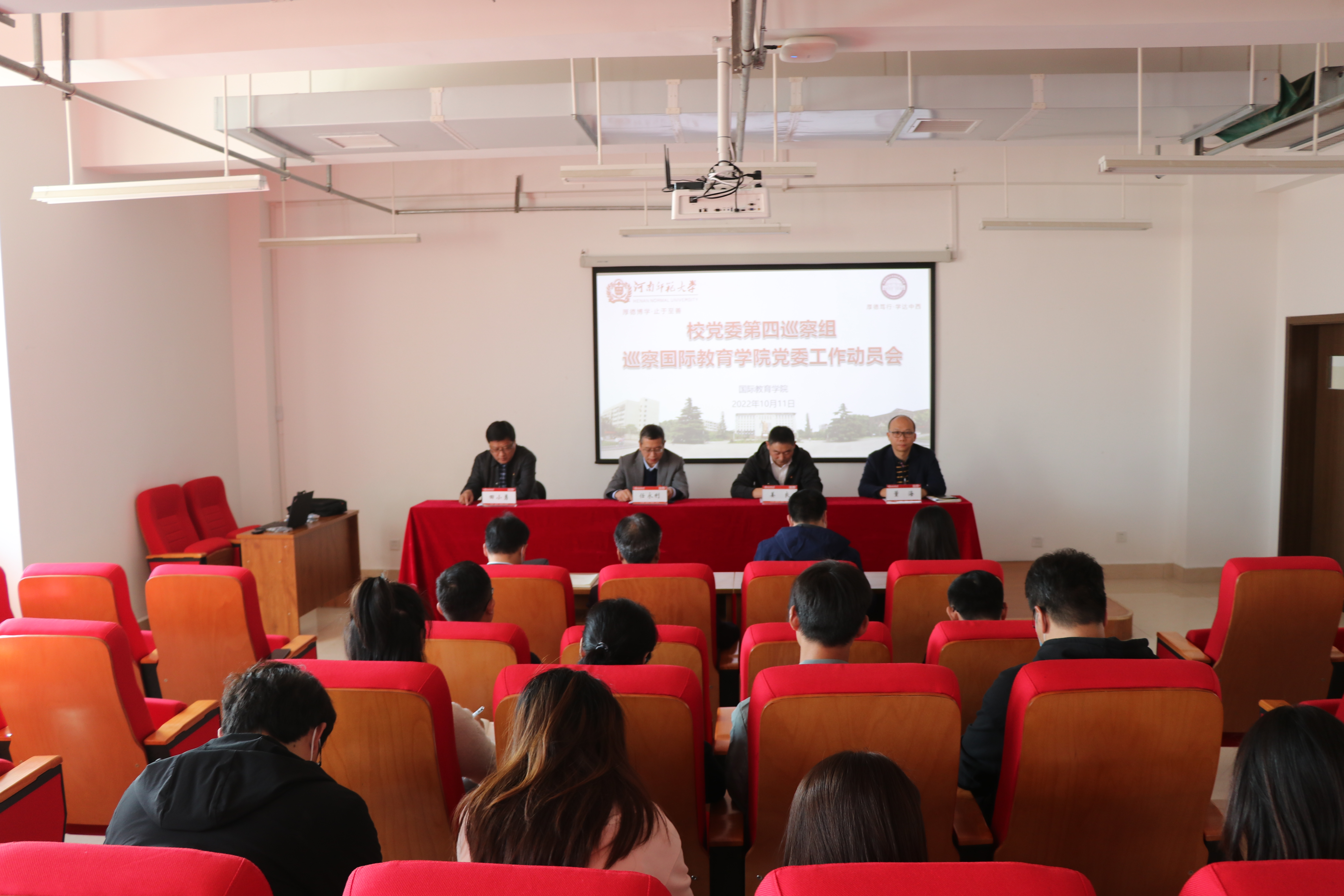 为坚决贯彻党中央巡视工作方针,落实省委巡视工作决策部署,推动全面从严治党向基层延伸,根据《中共伟德官网下载苹果版第十二届委员会第二轮巡察工作实施方案》安排,10月11日下午,校党委第四巡察组巡察国际教育学院党委工作动员会在学院报告厅召开。巡察工作领导小组成员、巡察办工作人员、第四巡察组全体成员、国际教育学院党政领导班子成员、全体教职工和学生代表等参会。会议由国际教育学院副院长(主持工作)董海主持。