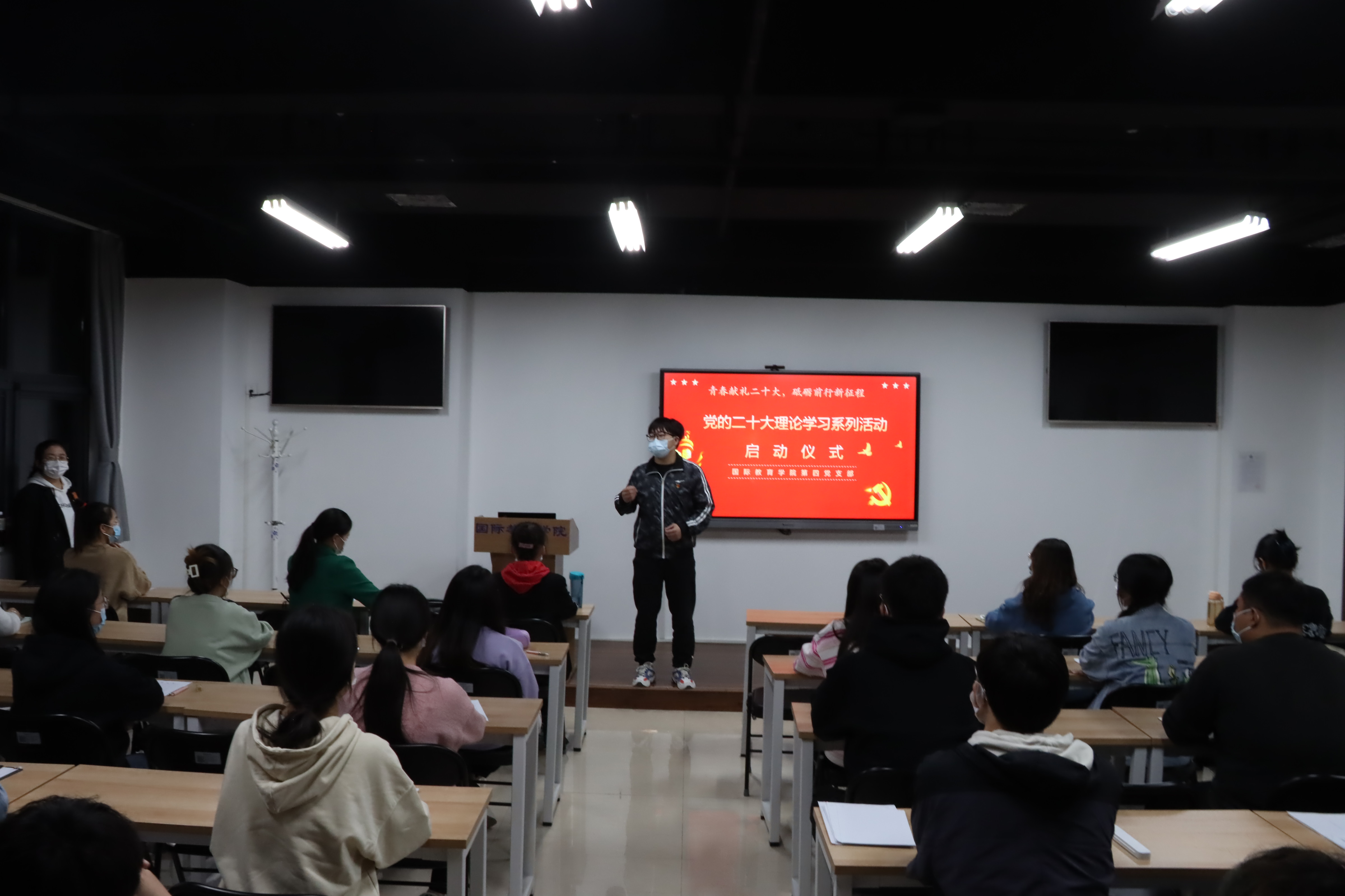 1023日,国际教育学院学生第四党支部党的二十大理论学习系列活动启动仪式在学院党校教室举办,活动由组织委员耿直同志主持。