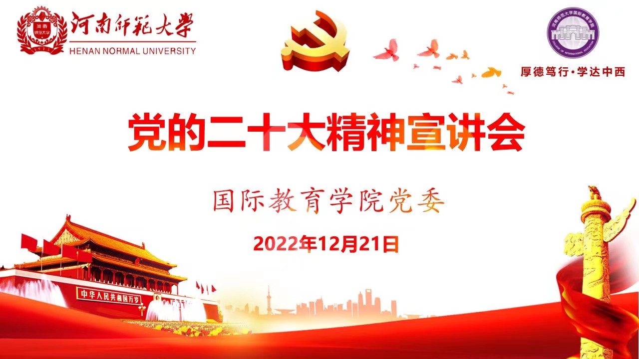 为深入学习宣传贯彻党的二十大精神,进一步把师生思想力量凝聚到党的二十大确定的目标任务上来,12月21日,国际教育学院特邀党的二十大精神校内专家宣讲团成员、马克思主义学院教师冯思淇博士担任主讲嘉宾,通过线上方式举行党的二十大精神主题宣讲会。学院全体教师、学生党员、入党积极分子、学生干部代表290余人参加会议,宣讲会由国际教育学院党委书记田小勇主持。