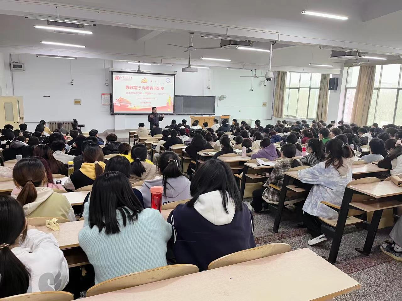2月28日下午,国际教育学院在新五五四教学楼202教室开展以《勇毅笃行 向着春天出发》为主题的专题辅导暨2023年第一期“成长的约定”师生面对面交流活动。专题辅导由学院党委书记田小勇主讲,学院团委、学生会全体成员和2022级本科生代表共两百余人参加。