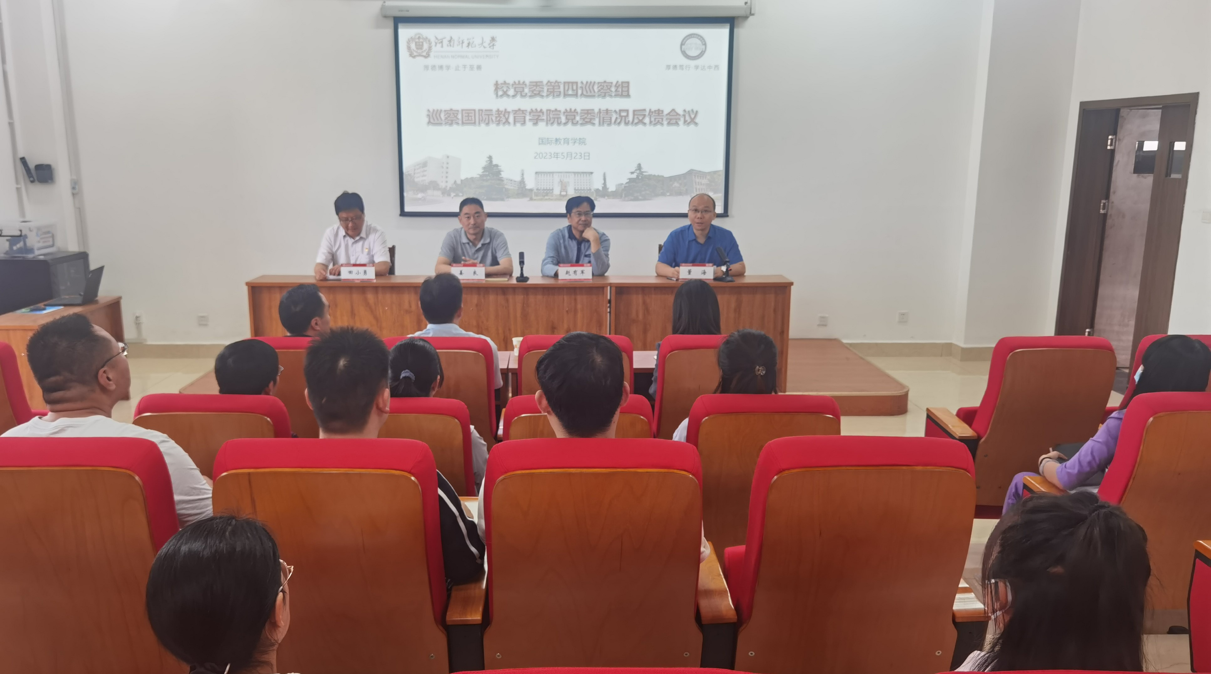 5月23日上午,按照校党委巡察工作安排,校党委第二轮巡察第四巡察组向国际教育学院反馈巡察工作。第四巡察组组长姜良、副组长赵有军、巡察组成员、国际教育学院领导班子及全体教职工参加会议。会议由国际教育学院副院长董海主持。