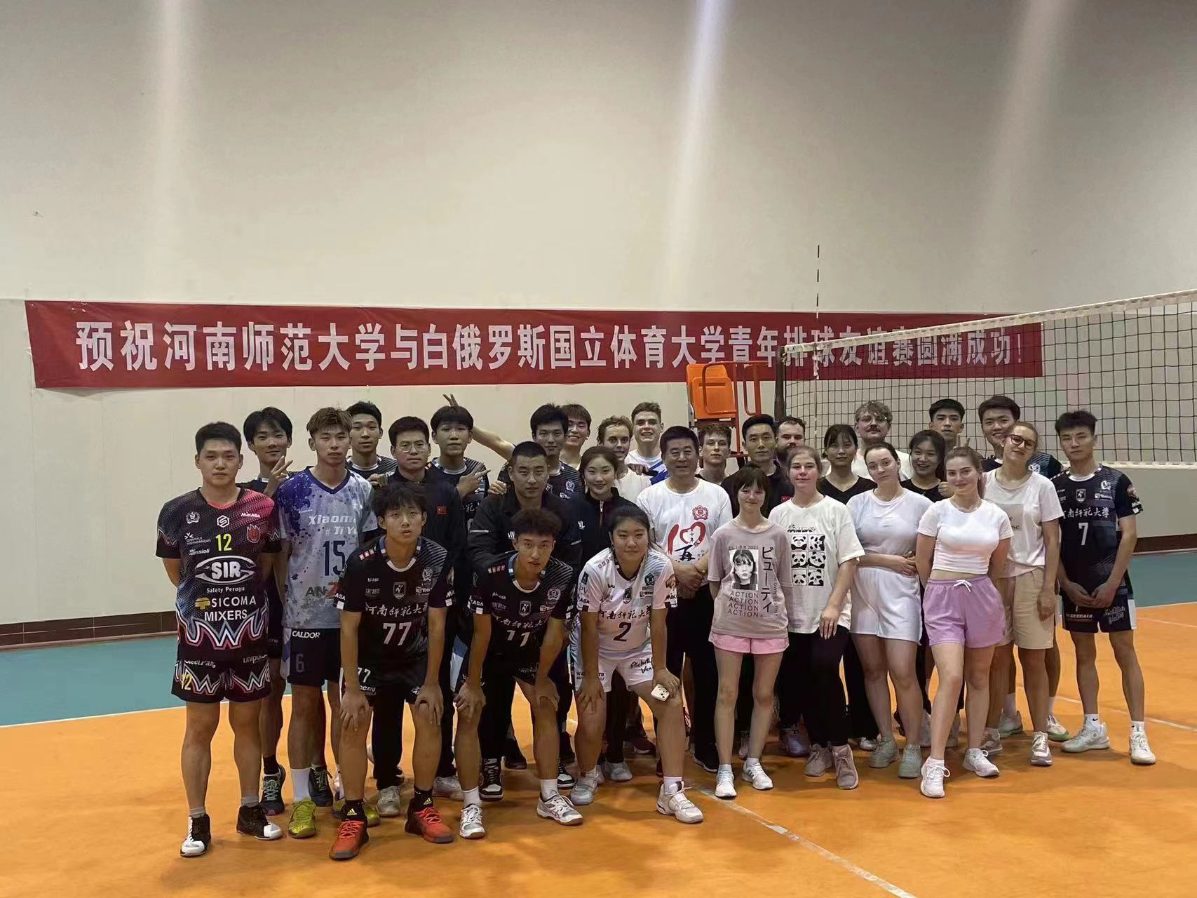 赛场上,双方队员奋力拼搏,拦网、垫球、扣球,挥汗如雨,全力以赴,场外学生们的呐喊声、欢呼声此起彼伏。两国青年专注认真,每一个传球都承载凝聚力,每一次接球都尽显青春活力,双方对抗火热,比分十分胶着,攻守转换之间展现紧密配合,比赛现场气氛沸腾。最终白俄罗斯青年2比1获得友谊赛胜利。赛后双方青年友好交流,充分诠释了“友谊第一,比赛第二”的体育精神。体育是一种国际语言,是全球通用的表达方式,它跨越了语言障碍;体育崇尚公正、平等和健康向上的理念,倡导永不放弃的拼搏精神。