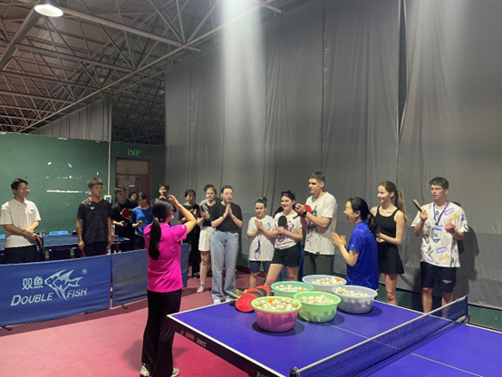 活动伊始,体育学院副教授王颢霖向白俄罗斯学生介绍乒乓球的发展历史,讲解了乒乓球握拍方式、站位、姿势、步伐及基本技术动作等。很多白俄罗斯师生虽然是第一次接触乒乓球,但他们学习热情却很高。在王颢霖的耐心指导下,大家很快掌握基本要领。