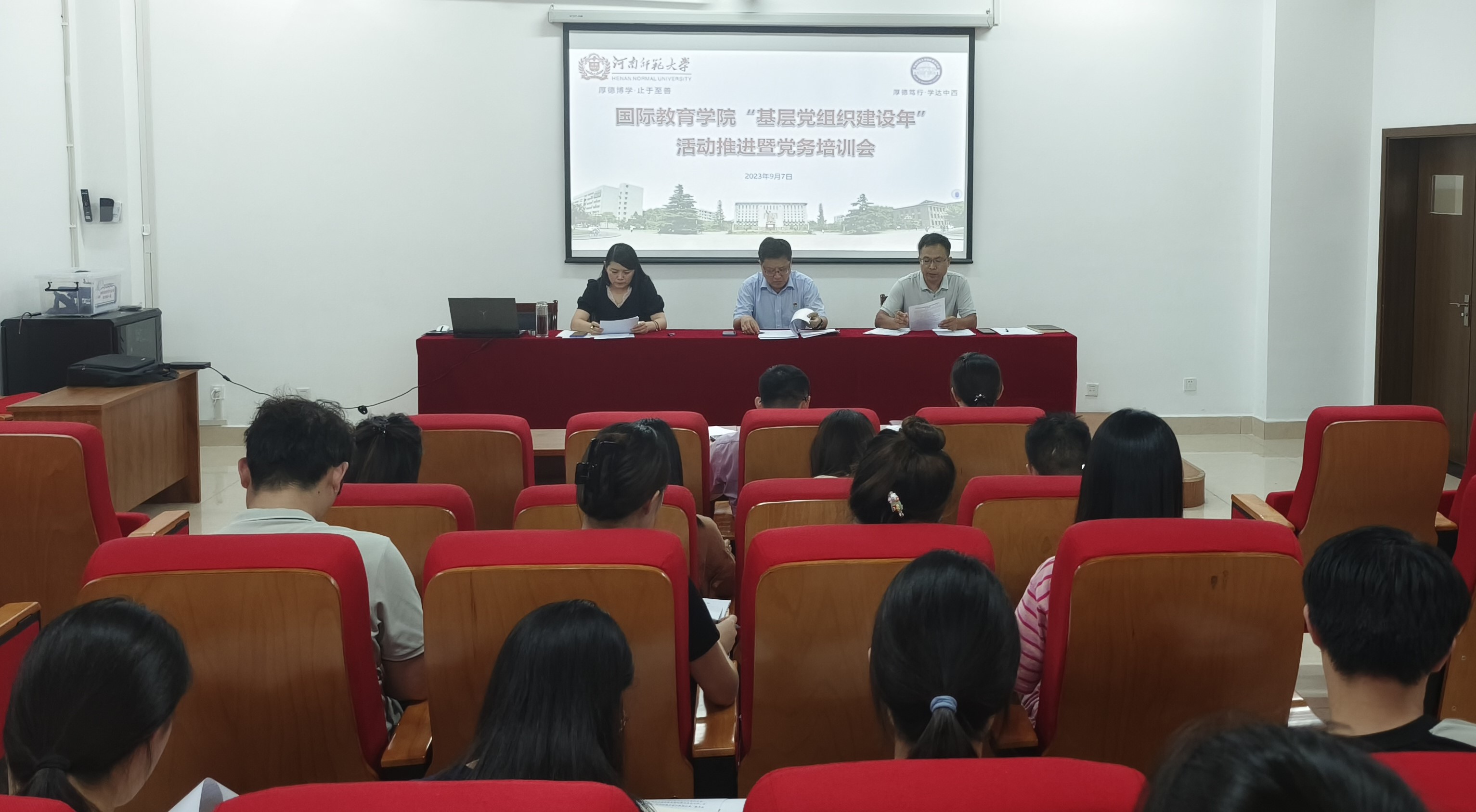 为有效提升基层党建质量和支部标准化规范化建设,推动全面从严治党向基层延伸、向纵深发展,9月7日下午,国际教育学院在求真楼701报告厅召开“基层党组织建设年”活动推进暨党务工作培训会。学院党委委员、各党支部委员、全体专职辅导员参加会议。会议由院党委副书记白丽主持。