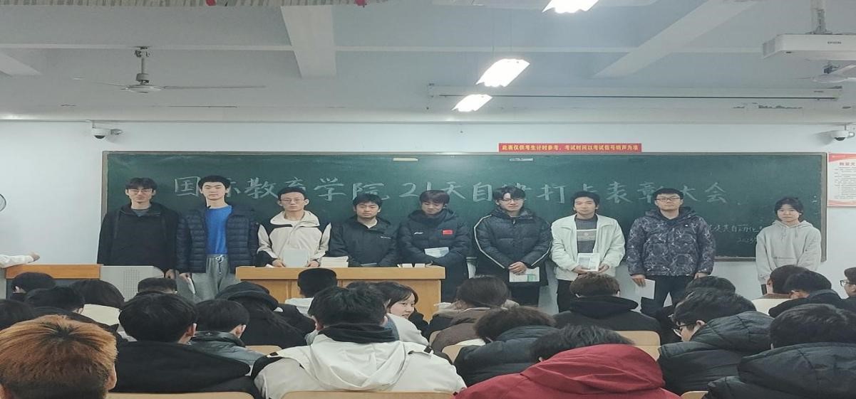 不积跬步,无以至千里;不积小流,无以成江海。为营造明德、正学、倡和、出新的优良学风,引导学生养成良好的学习和生活习惯,11月19日下午,国际教育学院在启智楼202教室举行“21天自律打卡”活动表彰大会。2022级专职辅导员王天航以及全体2022级学生参加本次活动。