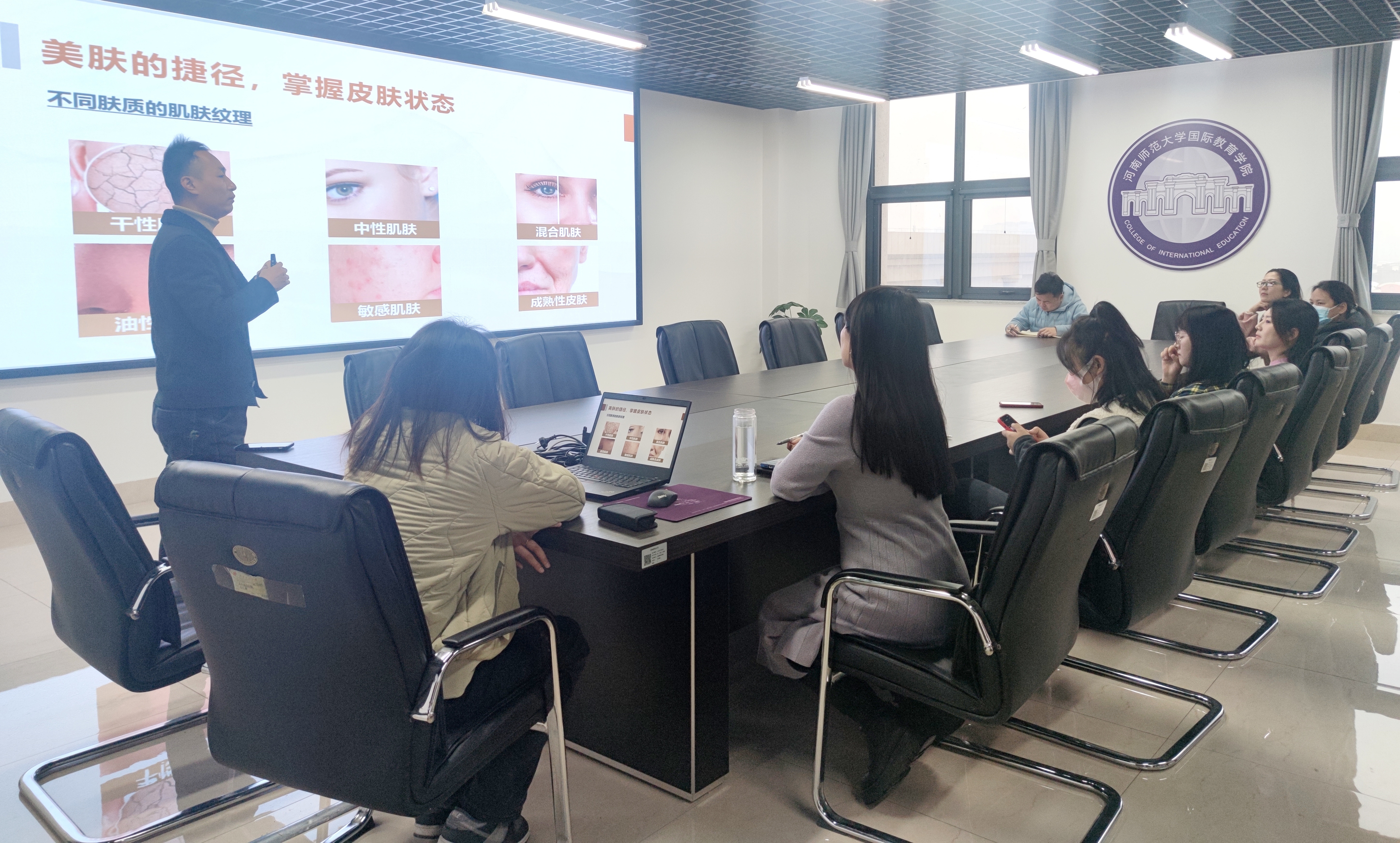绽放教师风采,“妆”点美丽人生。为进一步提升教师队伍的精神面貌,增强教师职业形象意识,打造女教师得体、美丽、优雅、知性形象,12月12日下午,国际教育学院分工会在学院会议室开展教师职业妆容打造培训活动,专业形象化妆师杜丹丹和王玉谦为主讲人。