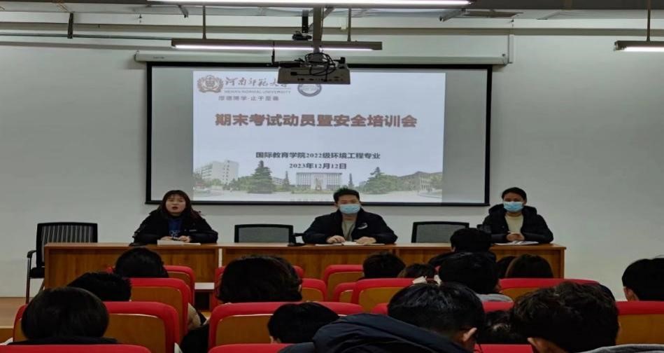 为进一步落实期末考试动员工作,强化学生安全管理,2023年12月12日,国际教育学院在学院报告厅召开“期末考试动员暨安全培训会”。2022级专兼职辅导员和环境工程专业全体学生参加会议。