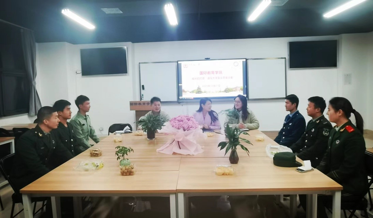 为进一步给退役复学大学生创造良好的学习、生活、成长环境,加强退役大学生思想政治引领,发挥退役大学生的先锋模范作用,2023年12月22日下午,国际教育学院在实训楼714教室举行“成长的约定”退役大学生士兵座谈会。国际教育学院党委副书记白丽主持座谈,专职辅导员史露露、郑光启、王天航以及全体退役大学生士兵参加。