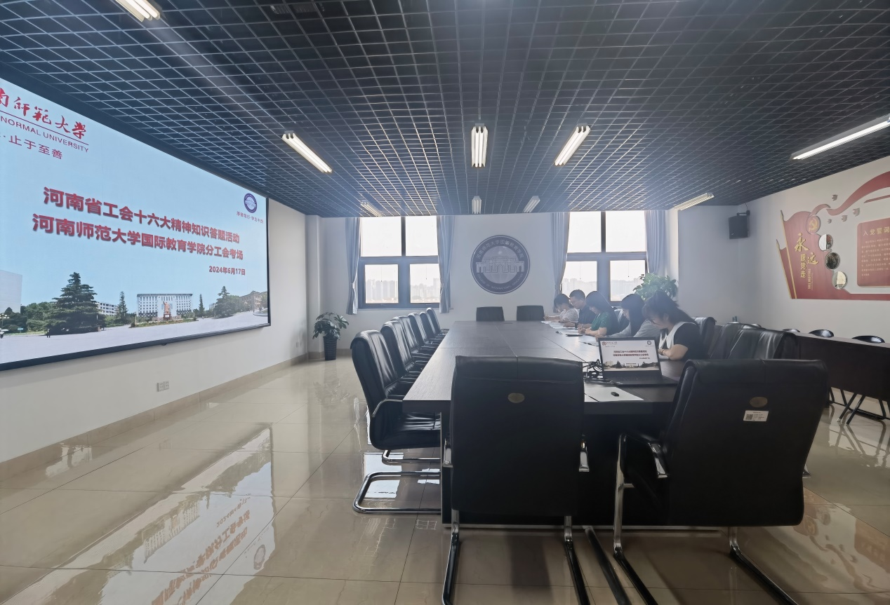 6月17日下午,国际教育学院分工会组织全体工会委员参加“河南省工会十六大精神知识答题活动”。答题活动在学院会议室举行,由分工会主席白丽主持。