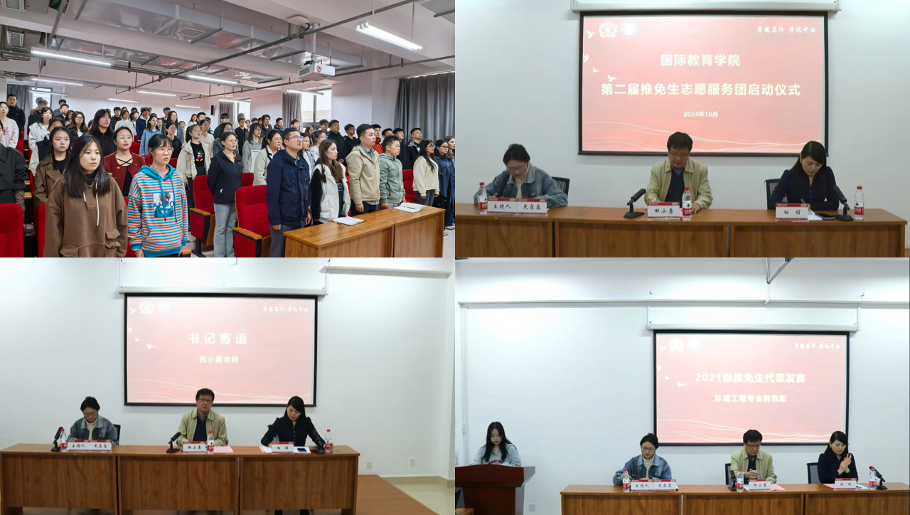 为充分发挥朋辈教育的模范和引领作用,发扬奉献、友爱、互助、进步的志愿服务精神,营造良好的院风学风,10月23日下午,国际教育学院在求真楼701报告厅举行第二届推免生志愿服务团启动仪式。学院党委书记田小勇、党委副书记白丽、各年级专兼职辅导员和100余名学生代表参加仪式。仪式由2021级辅导员史露露主持。