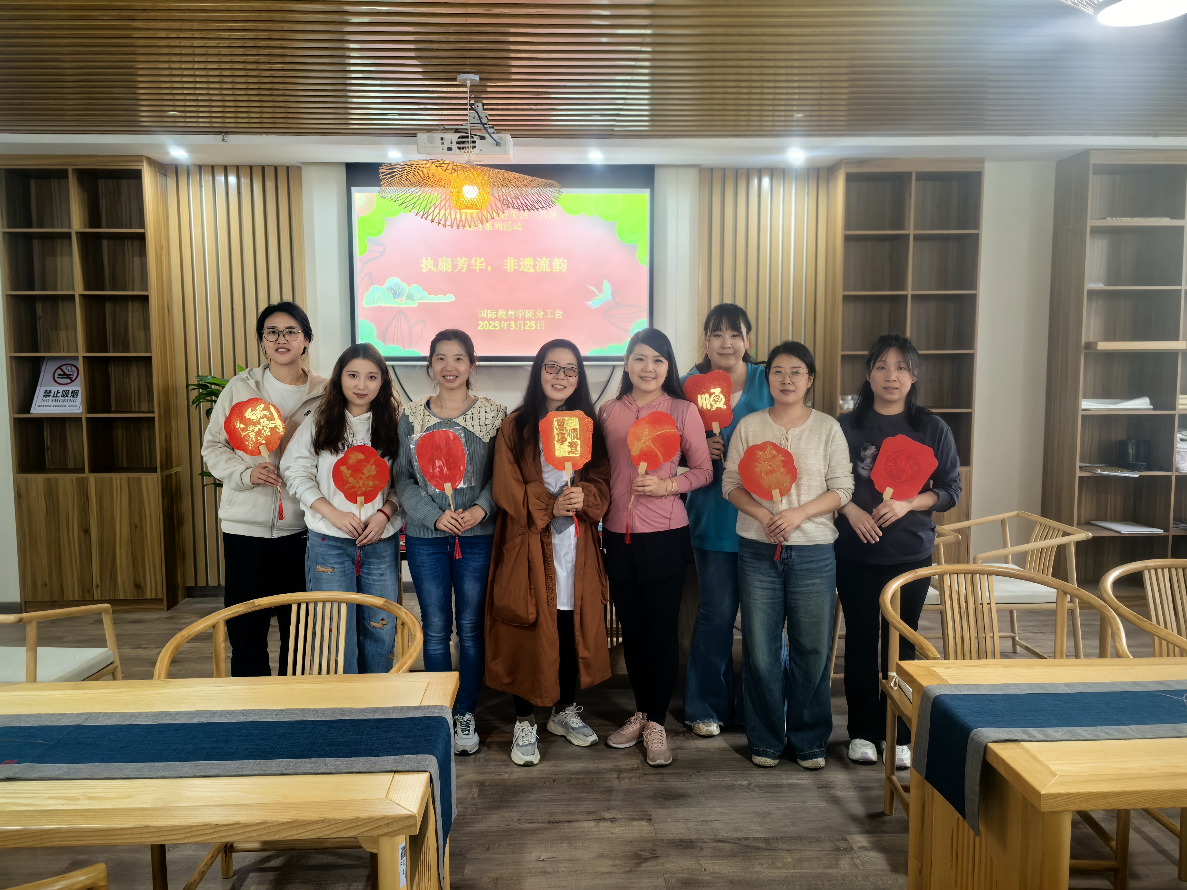 三月风暖,陌上春归。值此芳菲时节,国际教育学院分工会于3月25日下午在学院传承室举办国教人的美好生活三八活动月系列活动之“执扇芳华,非遗流韵”非遗团扇制作活动,学院全体女教职工齐聚一堂,以一场指尖上的非遗之约,为“三八”活动月增添一抹典雅韵味。