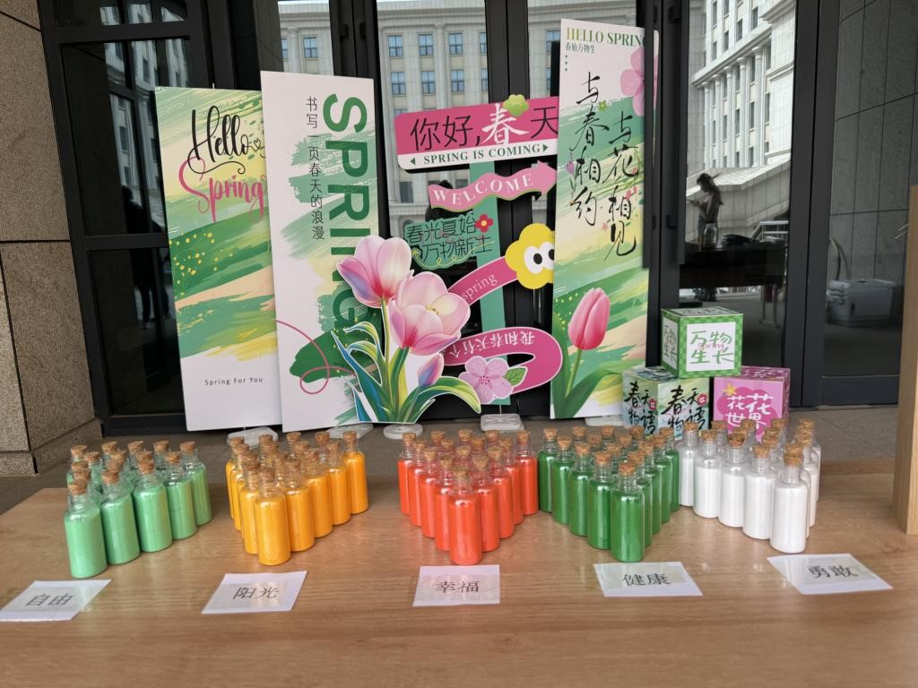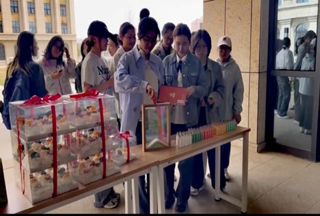 活动伊始,流沙瓶签到仪式吸引了众多同学的目光。五种颜色的流沙瓶分别象征着自由、阳光、幸福、健康和勇敢,同学们选择代表自己愿望的流沙,缓缓倒进相框中,为生日会增添了一抹浪漫而又充满希望的色彩。在“青春主理人”环节,各专业邀请的代表围绕 “新生” 这一主题展开分享。春天,万物复苏,正如同学们的青春,充满了开始的希望、温暖的爱与自由。他们的分享引发了在场同学的强烈共鸣,让大家更加深刻地感受到青春的美好与无限可能。伴随着欢快的旋律,甜蜜的蛋糕传递着真挚的祝福,同学们共同许愿,写下生日愿望并放入“时间胶囊”,随着每月生日会的举办不断汇聚,“时间胶囊”已成为大家成长路上的美好期许。互动游戏环节,所有同学被分为8组,以团队形式参与趣味投壶和一圈到底游戏。在趣味投壶中,大家全神贯注,力争将箭投入壶中;一圈到底游戏则考验团队协作,同学们齐心协力,在规定时间内完成呼啦圈的组装与传递。获胜同学获得了精心准备的游戏礼品,喜悦之情溢于言表。