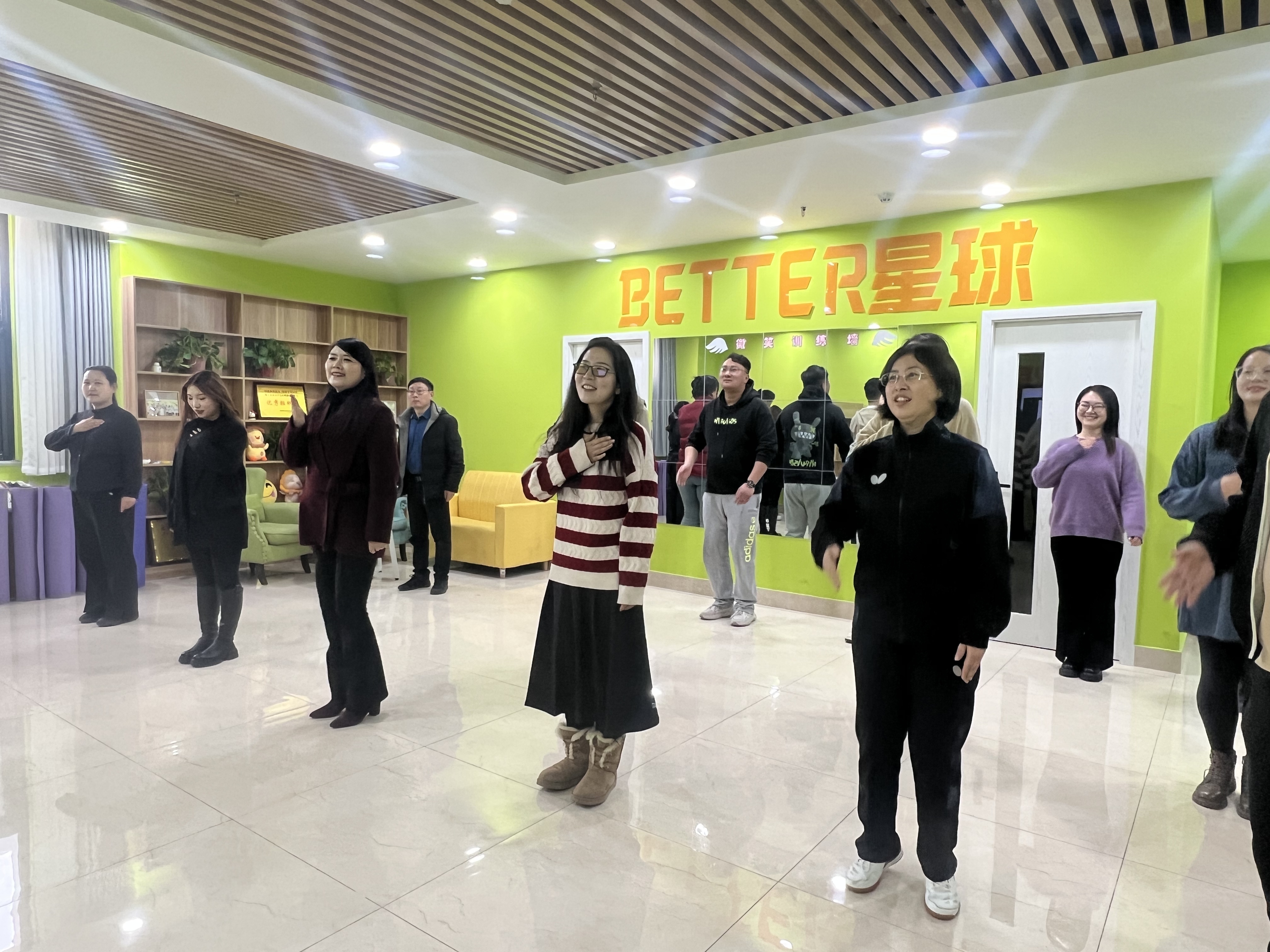 活动开场,动感音乐奏响,破冰环节瞬间点燃气氛,老师们舒展肢体,疲惫之感随之消散。猜词游戏趣味横生,老师们依次传递词语,欢笑声此起彼伏。古韵八段锦练习紧随其后,舒缓古典乐相伴,老师们沉浸其间,于一招一式中领略传统文化魅力。音乐疗愈环节将静谧氛围推向高潮,老师们仰卧闭目,在空灵疗愈音中聆听心灵回响。活动尾声,白丽向女教师们致以真挚节日祝贺,感谢她们的辛勤付出,期望老师们能以此次活动为起点,在忙碌的工作中,关爱自己,保持身心愉悦,以更加饱满的热情、更加昂扬的斗志投身到教育事业中。