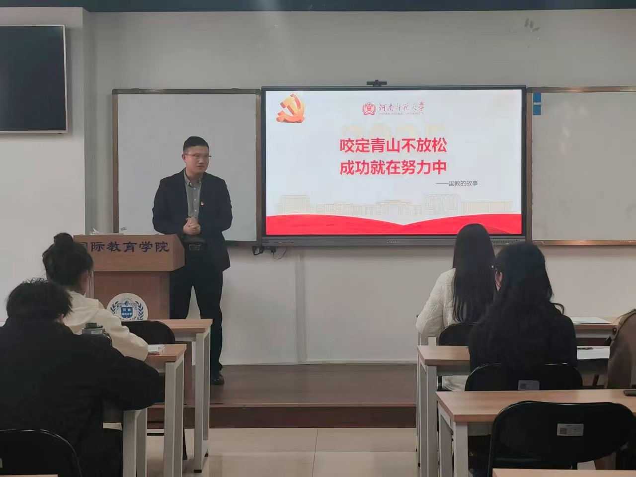 为深入学习贯彻党的二十大和二十届三中全会精神,全面贯彻习近平总书记关于基层治理的重要论述,深化党建引领基层治理的创新实践,推动党的组织优势转化为治理效能,讲好党员干部在基层治理中涌现出的“国教先锋故事”,3月28日下午,国际教育学院在求真楼714分党校教室举办第二届“讲精神、讲政策、讲实践、讲创新、讲遵纪”微党课比赛。国际教育学院党委副书记白丽、副院长刘海涛、各支部委员和党员代表共同担任评委。