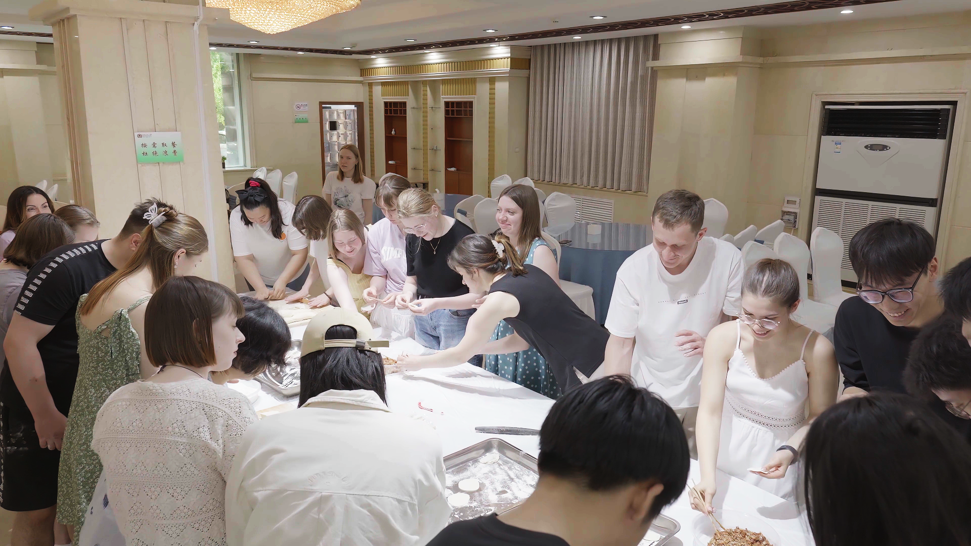 活动伊始,宋丽霞老师向白俄罗斯学生介绍了饺子的历史渊源与文化寓意。在包饺子环节,特邀学术交流中心面点师现场示范擀皮、捏褶、包馅等技巧。白俄罗斯学生们兴致盎然,从手法生疏到逐渐熟练,还发挥创意包出了各种形状的饺子,现场欢声笑语不断。