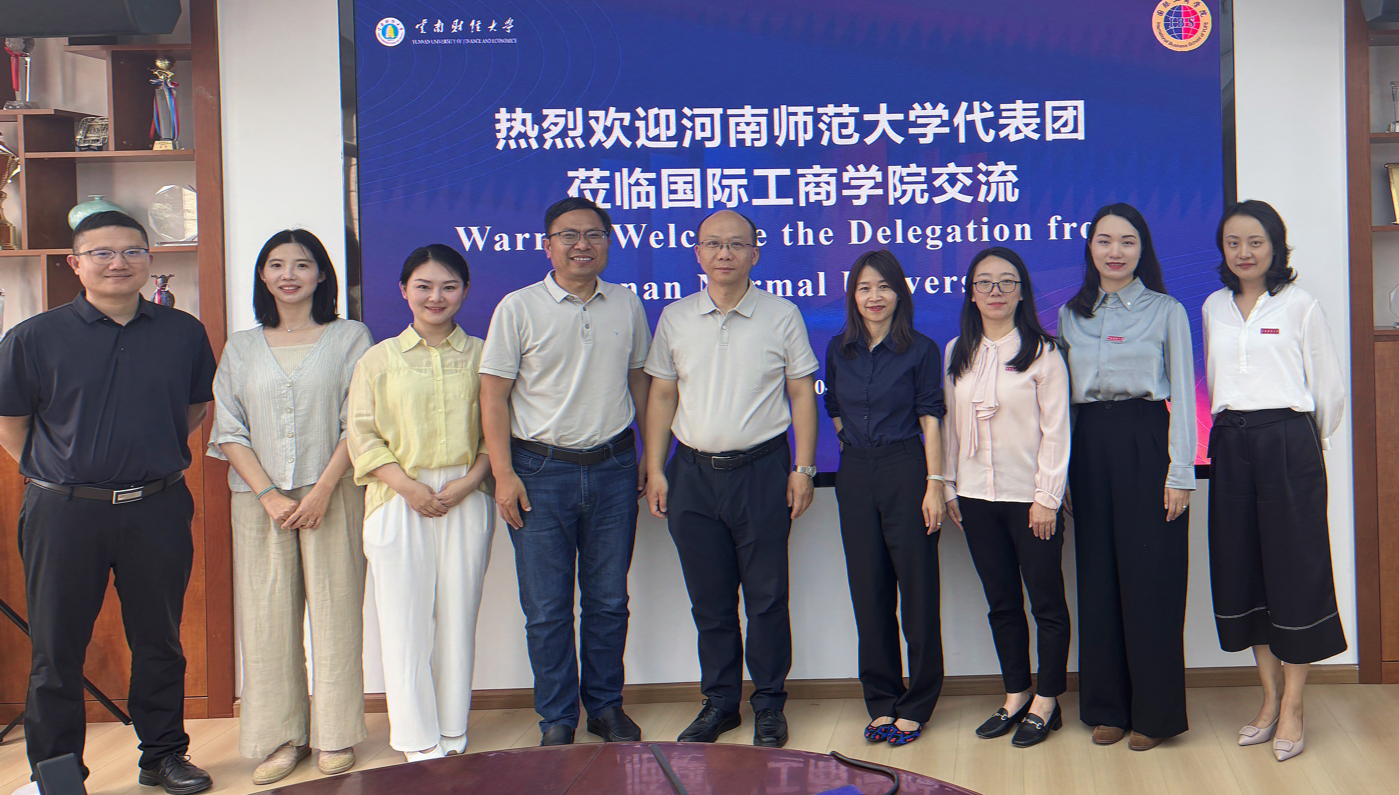 为深化国际教育合作,借鉴中外合作办学先进经验,6月13日下午,国际教育学院院长董海率队赴云南财经大学国际工商学院开展学习交流。国际工商学院院长张洪烈、副院长刘丽芳、副院长张俊婕及研究生教育与科研管理科相关负责教师热情接待并参与交流。