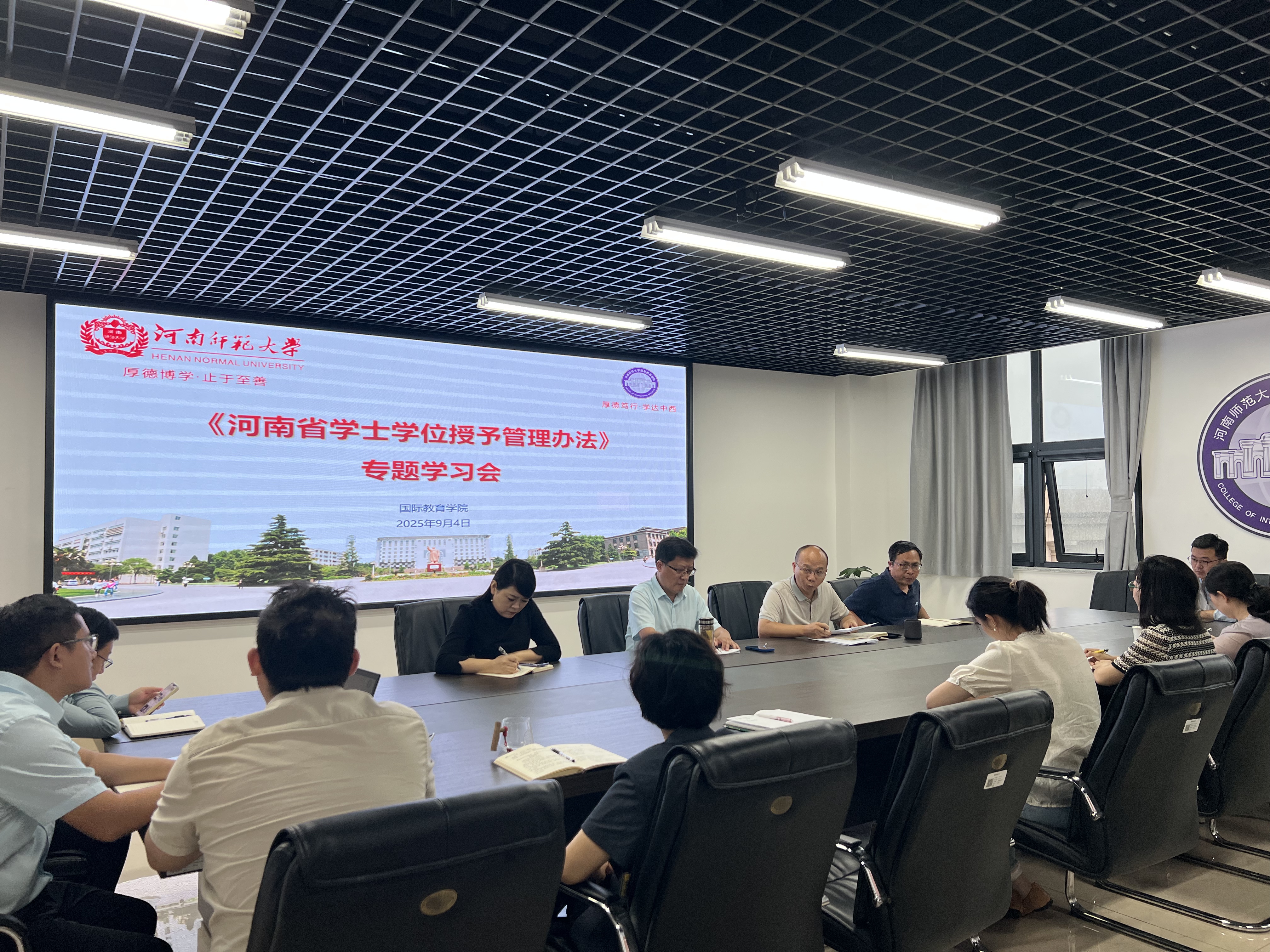 9月4日上午,国际教育学院于在会议室召开《河南省学士学位授予管理办法》专题学习会议。学院全体教师参加了本次学习。