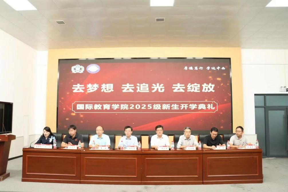 9月18日,国际教育学院在树惠堂隆重举行以“去梦想,去追光,去绽放”为主题的2025级新生开学典礼。学院全体领导老师、相关合作办学学院负责人和2023级全体新生参加了此次活动。典礼由党委副书记白丽主持。