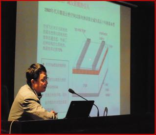王文静研究员概述了半导体结构及其原理、太阳能发电等方面的知识,对表征太阳能电池效率的开路电压(VOC)、短路电流(ISC)效率以及串并联电阻进行了全面的分析,并介绍了多晶硅和单晶硅太阳能电池的产业化制备流程。他还阐述了单晶硅片的制作工艺、晶体硅太阳能电池的生产技术、各类太阳能电池的发展现状。报告会后,王文静教授与师生进行了现场互动交流,并同部分教师围绕我国晶体硅的制作技术与环境问题进行了讨论。