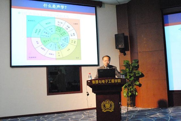郭业才教授的报告题目为“声学的生命力与魅力”。郭教授首先介绍了声学的与其他学科的联系,从声学的概念、发展等方面入手,就声学的科学性、技术性和艺术性等方面详细讲述了声学在日常生活中的应用。他提到,声学仅从技术性方面区分,就可分为噪声控制技术、电声技术、超声技术等。由此可见声学研究的范围之广,应用之深。