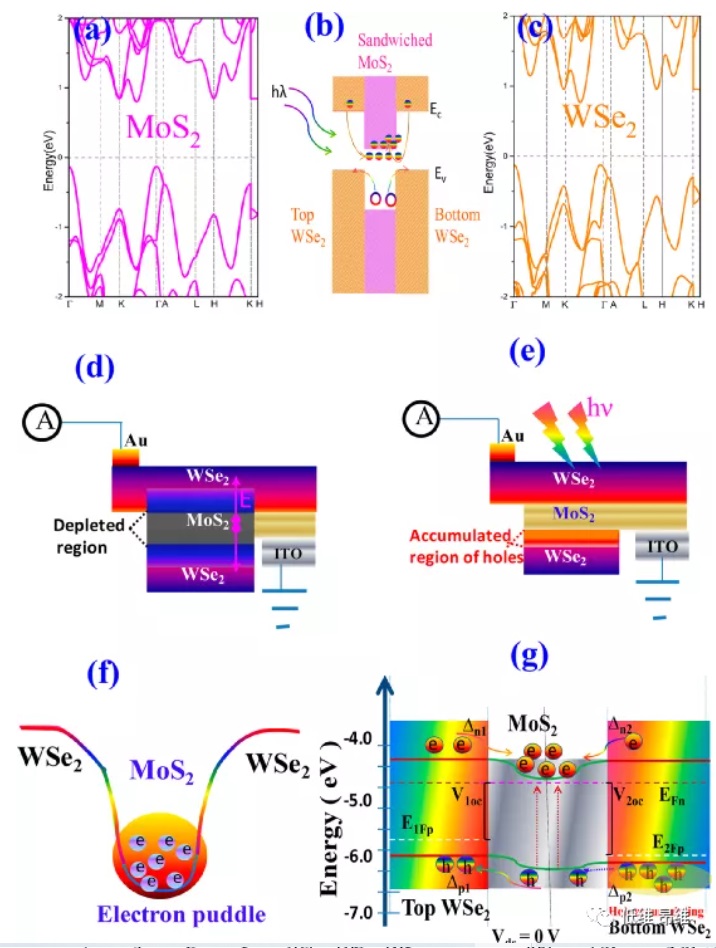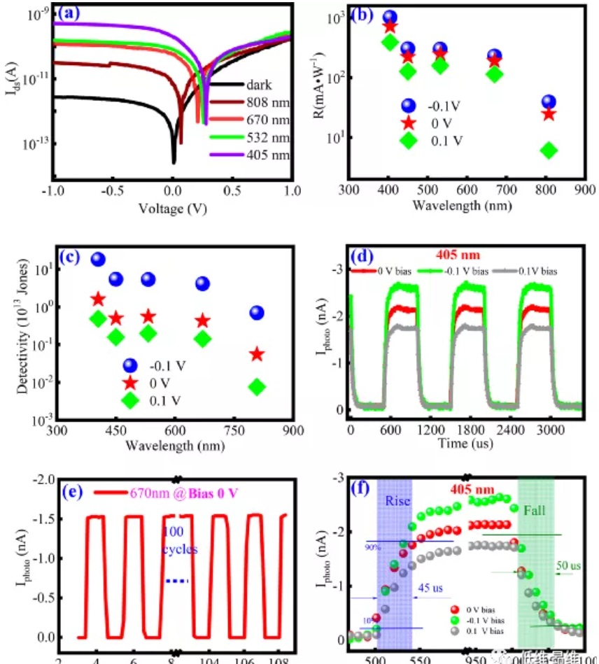 研究背景 由于没有悬挂键和晶格失配,范德华异质结(vdWHs)在下一代功能性电子和光电器件方面表现出了巨大的潜力。在已报道的vdWHs器件中,自供电光电二极管以基于光伏效应的无能量消耗为特征,因其很好地契合下一代光电子纳米器件的迫切需求而受到广泛关注。重要的是,与光电晶体管或光电导体相比,自供电vdWH光电二极管具有光伏能力和快速响应时间。然而,由于缺乏增益,当前的自供电vdWHs光电探测器始终存在低响应率的问题,这限制了极端条件下的应用,例如弱光信号。此外,由于场效应引起的长寿命陷阱状态,这些探测器的响应时间通常在毫秒级。因此,很难在同时拥有快速响应和高灵敏度方面取得平衡。 成果介绍有鉴于此,近日,伟德官网下载苹果版物理学院夏从新教授(通讯作者)和蒋玉荣教授(第一作者)等设计了一种基于WSe2/MoS2/WSe2双vdWHs的光伏场效应光电二极管(PVFED),其中源自一个vdWH的光电压调制另一个vdWH的光电特性。本文提出的光电二极管表现出出色的自供电能力,具有715 mA·W-1的高响应率和45 μs的快速响应时间。这项工作展示了一种通过引入光伏场效应来优化vdWH光电性能的有效方法。文章以“Photovoltaic Field-Effect Photodiodes Based on Double van der Waals Heterojunctions”为题发表在著名期刊ACS Nano上。