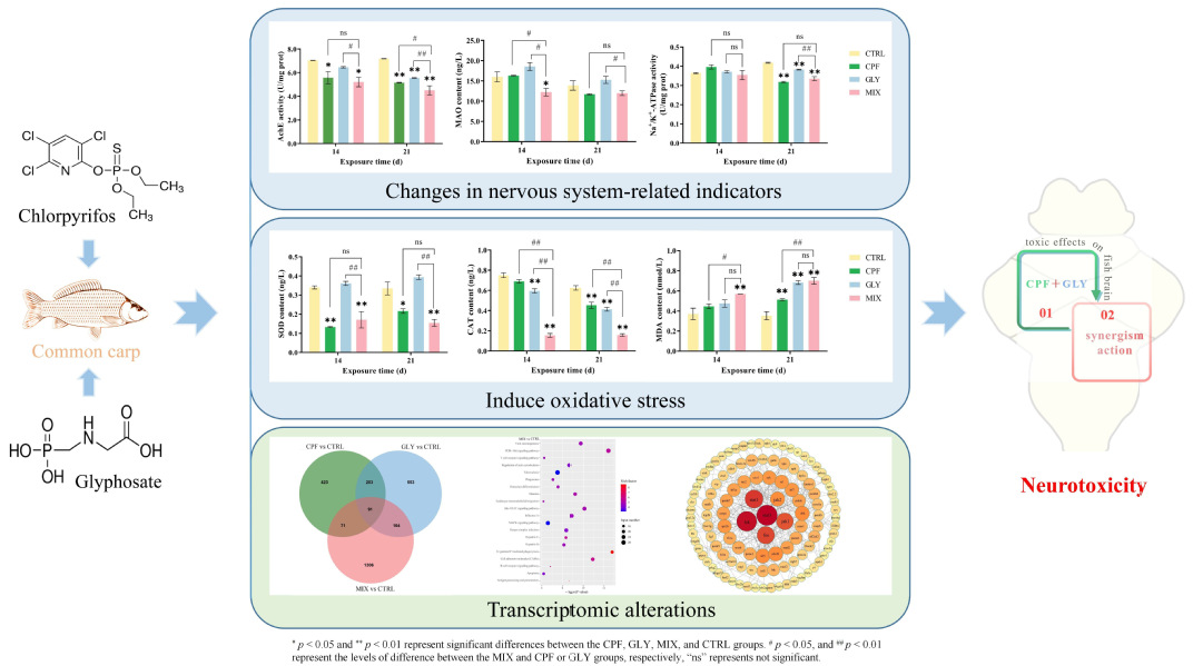 近日,联合实验室博士研究生张东芳在中科院二区期刊《International Journal of Molecular Sciences》发表题为《Single and combined effects of chlorpyrifos and glyphosate on the brain of common carp: Based on biochemical and molecular perspective》的研究文章。