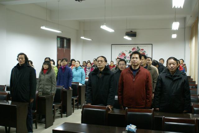在校第十一次党代会胜利闭幕之际,11月17日晚7:30,社会发展学院2009年教职工大会在学院多媒体报告厅隆重召开。参加大会的有校工会副主席孙玉珍、秦静良老师、社会发展学院党政领导班子成员及全院42名教职工代表,大会由院工会主席、党总支副书记郑学山主持。