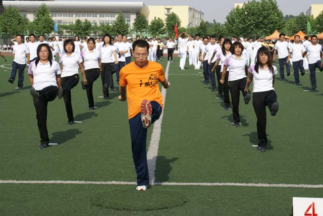 6月2日下午,学校塑胶操场人头攒动,锦旗飘扬,由校工会组织,全校23个单位参加的广播操比赛如期举行,我院全体教师精神抖擞,器宇轩昂的列队进入比赛场地,经过近一个月的集中训练,我们有充足的信心和饱满的热情来参加和赢得好的名次。继外国语学院之后我们学院第二个登场,在短短的六分钟里,我们全体老师认真流畅的做完全套动作并按秩序退场。整个过程一起哈成,给在场的观众留下了深刻的印象。本次活动展示了我院蓬勃向上的精神风貌,团结了队伍,为今后的工作奠定了良好的基础。
