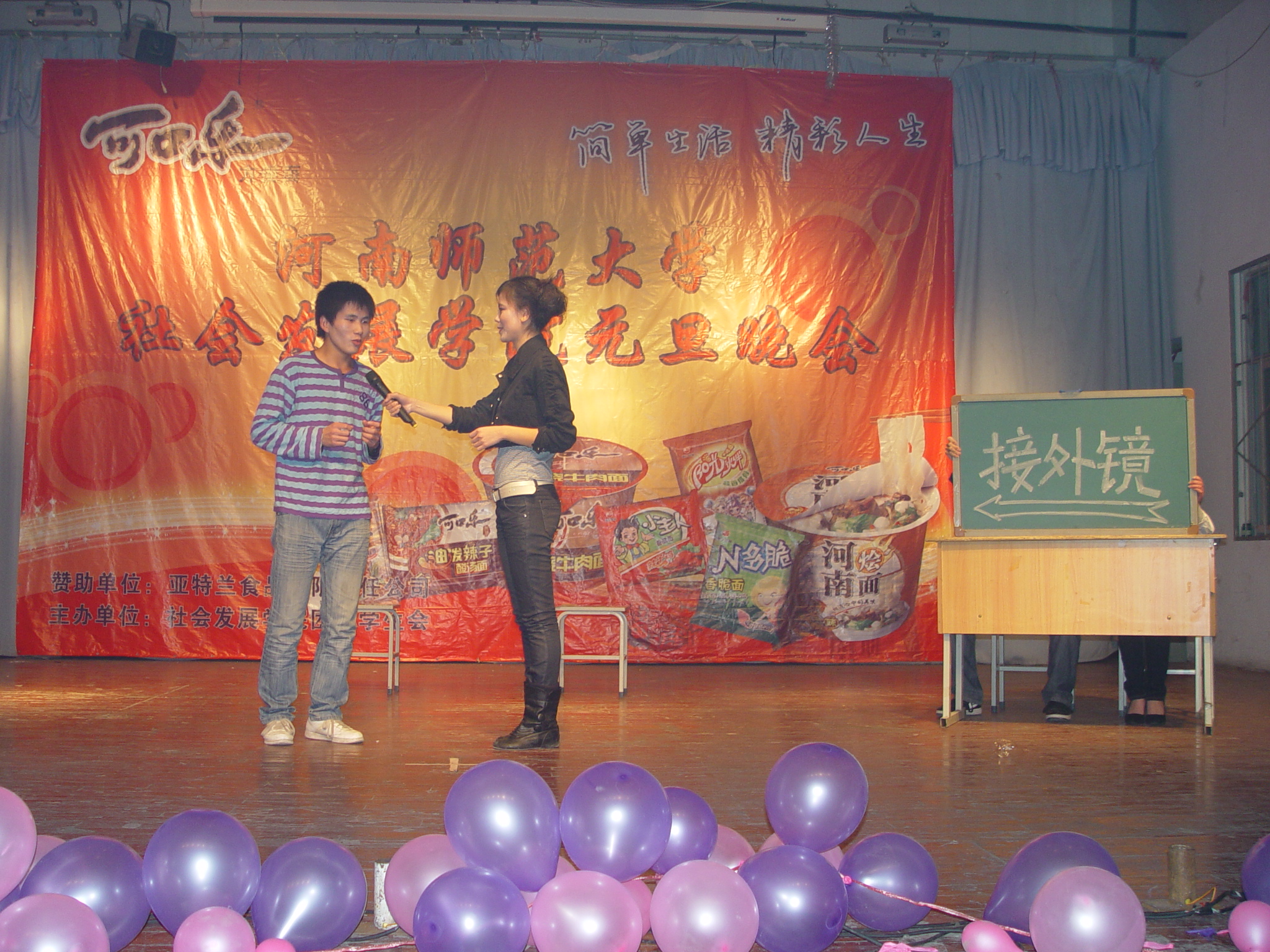 辞旧迎新庆元旦,师生同乐贺新年。 整场晚会高潮迭起,精彩不断。晚七点半,晚会在一段充满异域风情的华丽舞蹈中拉开帷幕。王记录院长向全院师生发表了热情洋溢的新年贺词,他对我院在2009年取得的一系列骄人成绩给予了充分肯定,并希望全院师生能够再接再厉,在新的一年里创造更大的辉煌。在一首深情的《season in the sun》演唱之后,精彩节目一一呈现。小品《新闻条播》以其幽默风趣的台词、夸张到位的表演赢得了台下阵阵掌声;接下来的街舞串烧和古筝表演,展现了当代大学生的青春活力和多才多艺,赢得了现场的尖叫和共鸣;而由李娜、李洋两位东北同学表演的二人转《唐僧路过女儿国》尤其引人注目,风趣搞笑的语言、精彩多变的表情、经典夸张的语气,赢得了现场持续的爆笑声和喝彩声,将整场晚会推向了高潮;09历史教育学班的三句半《历教迎新年》更让大家仿佛跟随他们行走在师大校园内外。 “春华秋实”,是我们对于全院师生一年生活的总结和新一年的希冀,同学们表示要将今晚的活力化为考场的动力,为本学期、为精彩的2009年画上圆满的句号。 (社会发展学院 阮 超 邢 威) |