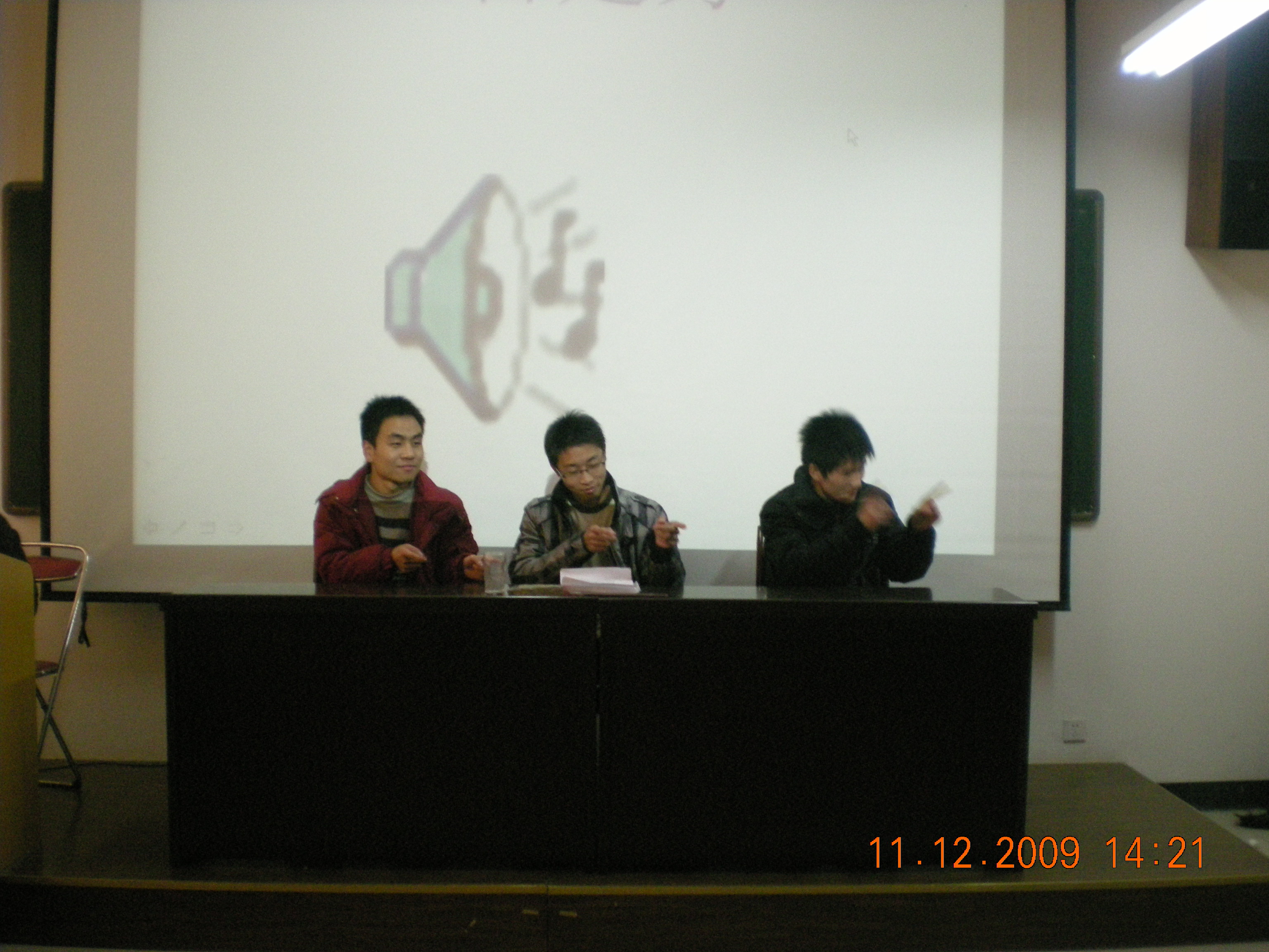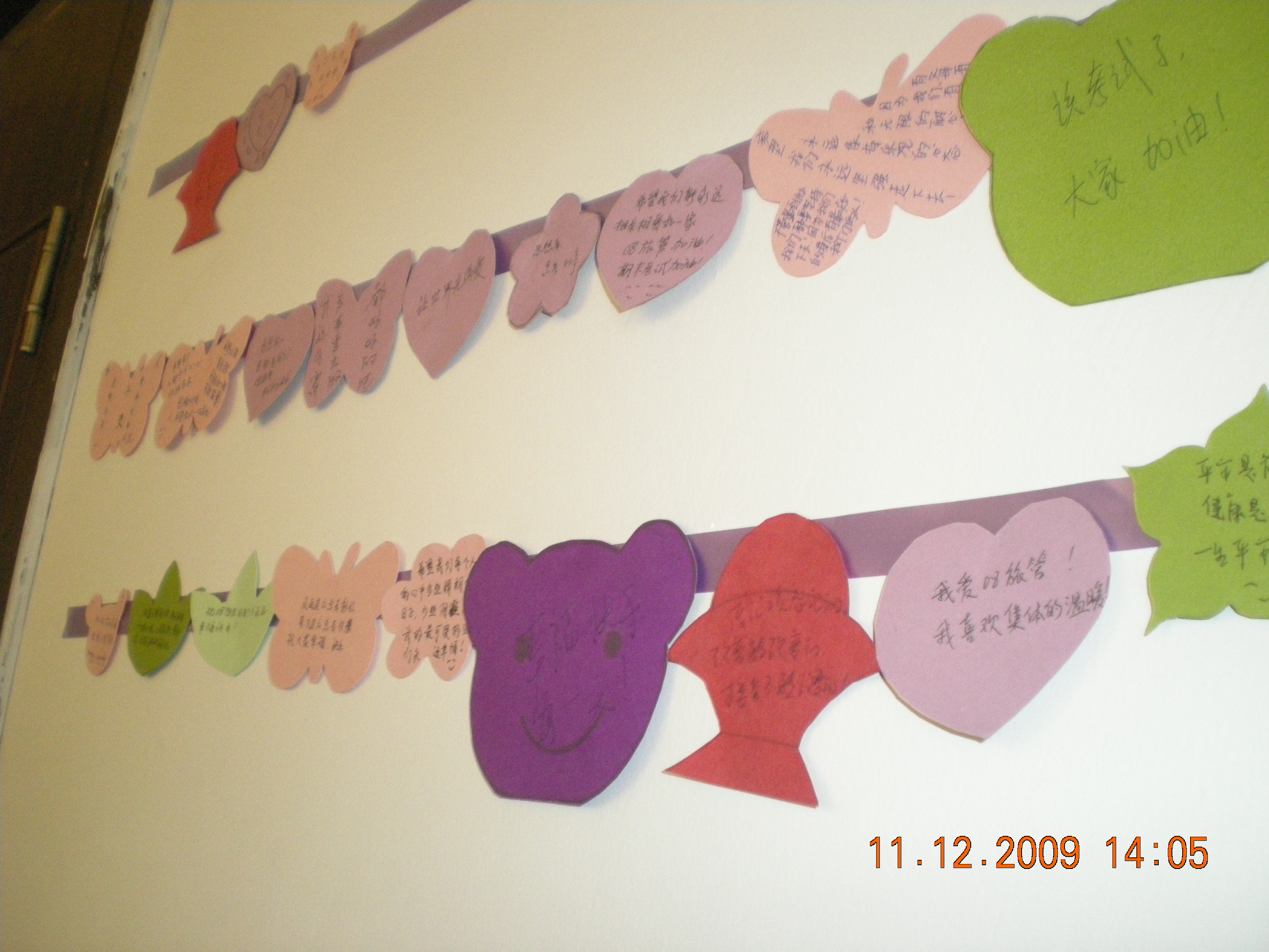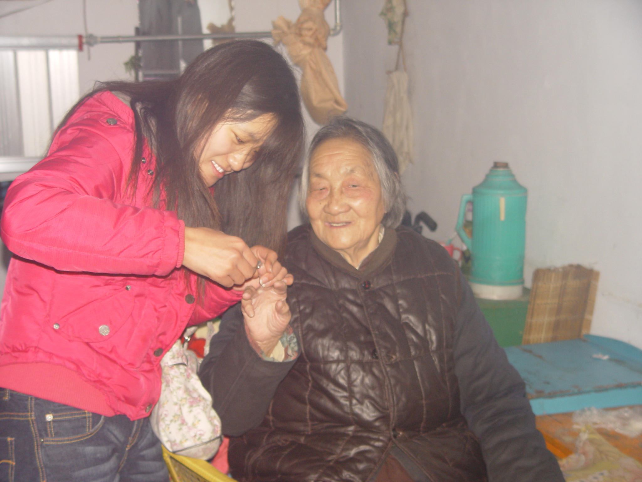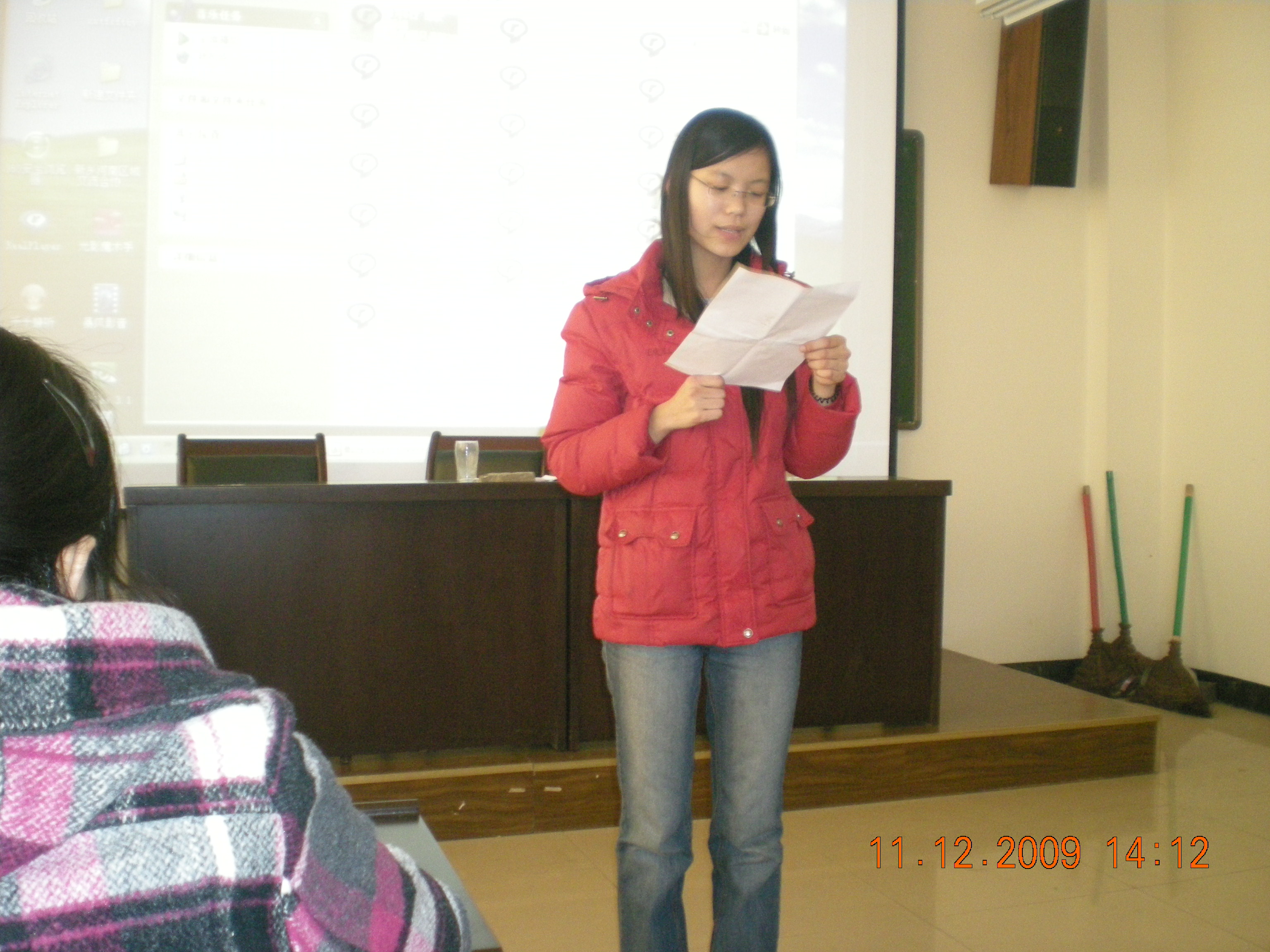 晚上7:00,在师帅、闫冰同学活泼幽默的开场白中本活动正式开始。首先,张雁翎同学以饱满的热情带来一曲富有地方特色的戏曲《抬花轿》,赢得了满堂喝彩。紧接着,张雁翎同学所在的513全体成员为大家献上一曲充满感情的《再回首》。女生打响了头炮后,男生也不甘落后,王钊和刘永刚同学随即献上悠扬婉转的《青花瓷》,刘永刚同学反串女声,获得一片掌声,更有同学献上热烈的拥抱和气球。歌曲过后,陈自豪等同学朗诵的诗歌《相信未来》突显了青春的霸气;张峰和黄姗姗同学一起朗诵的《感恩祖国》,表达了青年学子对祖国母亲的深深祝福以及心底的感动。精彩的一段节目过后,有趣的互动环节开始,男生605寝室以及女生512寝室被幸运的抽中,并最终双双顺利过关获得奖品。互动过后,王钦明和闫冰同学分别将一首《离家的孩子》和《我只在乎你》送给远方的父母,希望他们身体健康,生活幸福,同时也送给在座的每一位同学。而平时比较腼腆的张帅同学为感谢在他生病期间关心过他的人,清唱《真心英雄》,感动了所有同学,教室内响起了大家的持续而热烈的掌声。而后夏文明同学以豫剧《哭魂》又赢得了满堂喝彩。师帅同学在热烈的气氛中献上《母亲》,将同学们的感情升到高峰。在庞学近、颜昌义、刘永刚同学一首《海阔天空》中演出节目圆满结束。最后,黄姗姗同学、张峰同学等也谈了自己对于“感恩”这一话题的内心感受,班会在同学们意犹未尽的情绪中结束。 通过这次主题班会,同学们深深感受到08历教班的团结和班集体的温暖,也感受到身边其实有太多需要感谢的人,立志自己要勤奋学习,以后多为社会做贡献,并进而实现自己的人生价值。 (社会发展学院 张启厚) 社会发展学院2009级外交学班组织赴敬老院为老人们送关怀