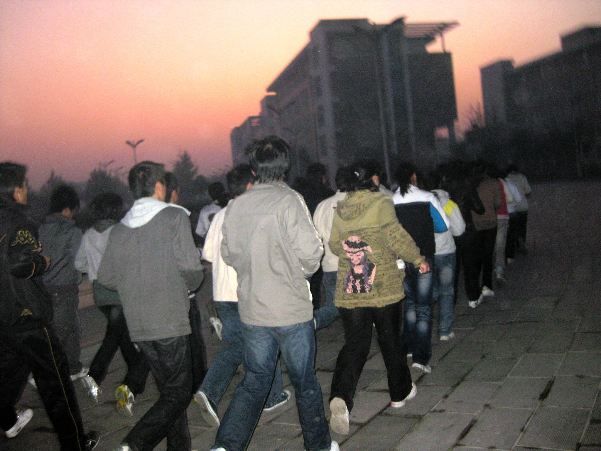 |    11月6日,09级人力资源管理专业全体同学在东区大花坛旁继续进行持续了半个多月的集体晨练。 早上6点20分,天还没有完全亮,09人管的同学们早已自觉地站好了队列。虽然早上的气温较低,但同学们都热情似火、积极挑战自我。首先,班长组织同学们预热一下,围绕中心花坛跑两圈,同学们步伐矫健,口号嘹亮;随后是广播操时间,同学们动作整齐划一,做的认真仔细,充分活动了筋骨,另外加速跑两圈后,进入游戏环节。游戏环节有“贴烧饼”、“两人三足”、“拔河”等等众多的趣味游戏,整个锻炼现场欢声笑语不断,活动开展的有声有色,周围路过的同学纷纷驻足观看。 通过组织晨练有利于培养同学们早睡早起、积极锻炼身体的良好生活习惯,同时也有利于培养整个班级的协作意识,增强同学们的团队合作精神。 据悉,朝阳三十分是我校自律委的特色活动,旨在培养大家良好的生活习惯和锻炼强健的体魄,之后还会有我院其他班同学进行此项活动。 ( 文/邢威 师晓帅 图/张道方) |