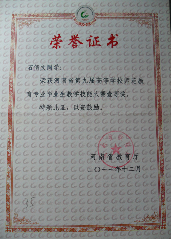 河南省第九届高等学校师范教育专业毕业生教学技能大赛一等奖 石倩文