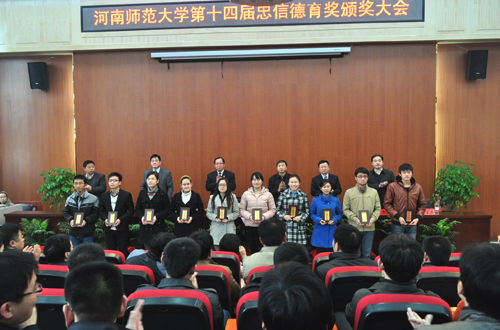 苏龙德先生介绍了台湾忠信文教基金会的基本情况和台湾忠信学校的概况,阐释了“忠信”思想的核心内容,介绍了“德育为先,知行合一”的具体做法。会上,校团委书记岳杰勇宣读了获奖名单。主席台就坐的嘉宾与领导为60名获奖同学颁奖。商学院2010级同学赵冠星代表全体获奖学生作了精彩发言。