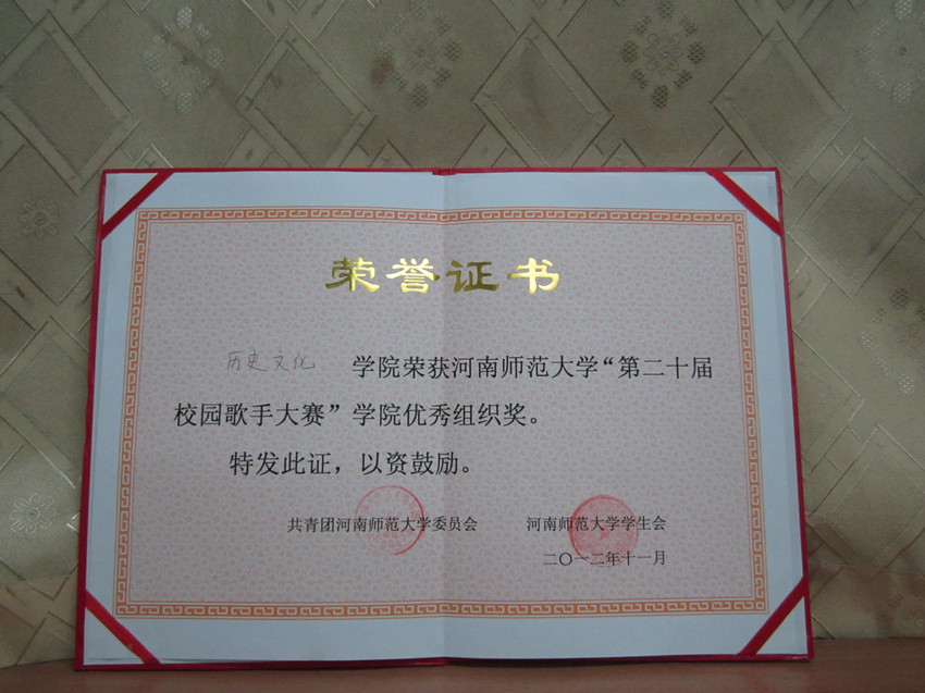 伟德官网下载苹果版“第二十届校园歌手大赛”学院优秀组织奖