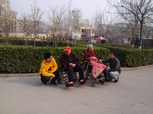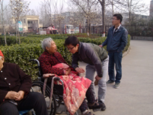 到达敬老院后,在院内工作人员的指导下,同学们有序地分为两个小组,开始持续一上午的敬老献爱心活动。男生们打扫院子并为行动不便的老人推轮椅。来自2012级历史学二班的裴鹏涛,在为老人推轮椅的同时和老人话家常,因老人声音较低且模糊,他不时俯下身子,将耳朵贴在老人嘴边,听老人说话。女生们忘记脏和累为老人们打扫居室,并与老人亲切交谈,一位九十岁高龄的张姓老人拉着志愿者的手不停地说谢谢,还拿出照片给志愿者看。活动最后,为了不打扰老人们午休,志愿者们在与老人们合影留念后离开。