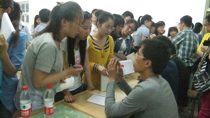 活动在同学们热情的掌声中拉开了帷幕,首先,各专业的学长学姐相继发言。学长学姐们真诚的向大家讲述了自己的大学生活,对同学们即将面对的考研、就业大方向的选择提供了指导和建议。其中曾经荣获国家级说课比赛二等奖的秦磊同学就结合自己的实际经历分享了自己的经验,尤其提醒大家要苦练基本功,着重在实践中夯实师范生的教学技能,才能在求职中获得用人单位的青睐。随后,活动进入面对面的自由提问环节。同学们积极踊跃的提出自己的问题和困惑,特别是近些年的考试趋势和备考的心态问题,学长学姐都一一耐心的进行了解答。最后,学长学姐们走进同学们中间,和大家坐在一起分组讨论。同学们就各自遇到的具体问题进行了详细的询问,学长学姐们凭借丰富的经验给出了答复。活动结束后,同学们纷纷表示,此次活动使自己受益匪浅,收获了买不到的经验和动力。