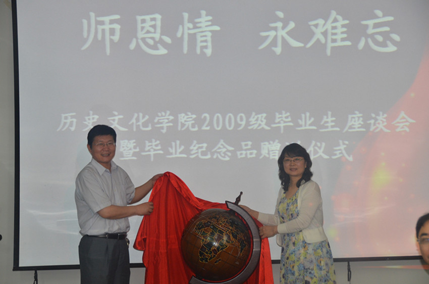 深情别母校,感恩续人生。5月28日上午8:30,历史文化学院2013届毕业生捐赠仪式在历史文化学院办公楼205室举行。学院党总支书记王霞、院长王记录、党总支副书记康海军、副院长张壬、及鞠明库、李峰等学院骨干教师、团委书记张利兵、2009级辅导员杜志亚、闫冰、2012级辅导员李新艳出席了仪式。学院2009级学生代表130余人参加了捐赠仪式。