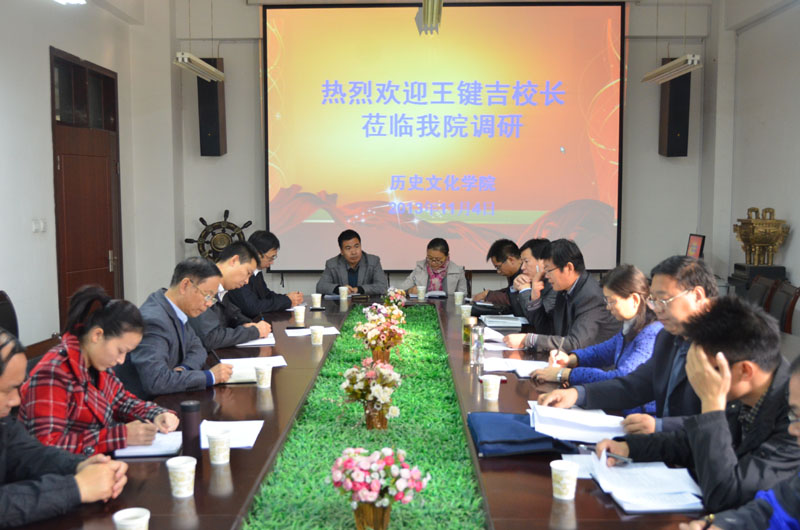 11月4日下午,王键吉校长来我院调研,我院领导班子成员和部分教授、博士代表参加了座谈。王记录院长就学院师资队伍建设、本科专业设置、研究生培养、教学质量工程建设、科学研究、学科建设、学生工作以及存在的问题、今后的重点工作等向王校长作了汇报,并就学校工作提出了一些合理化建议。王霞书记对学院工作做了补充说明。王校长认真听取了汇报,对历史文化学院近年来所取得的成就给予了高度评价,指出学院在教学、科研、学科建设诸方面思路清晰,对未来的发展定位准确,重点突出,方案可行。要求学院真抓实干,稳步前进,努力把各项工作做好,学校一定要采取相关措施,全面支持学院工作,解决学院面临的问题,实现新的突破。与会的部分教授、博士也就自己所关心的问题与王校长进行了交流,王校长均一一给予说明和答复,现场气氛轻松活跃。王校长务实的工作作风及对学院工作的准确指导,成为学院进一步发展的动力。