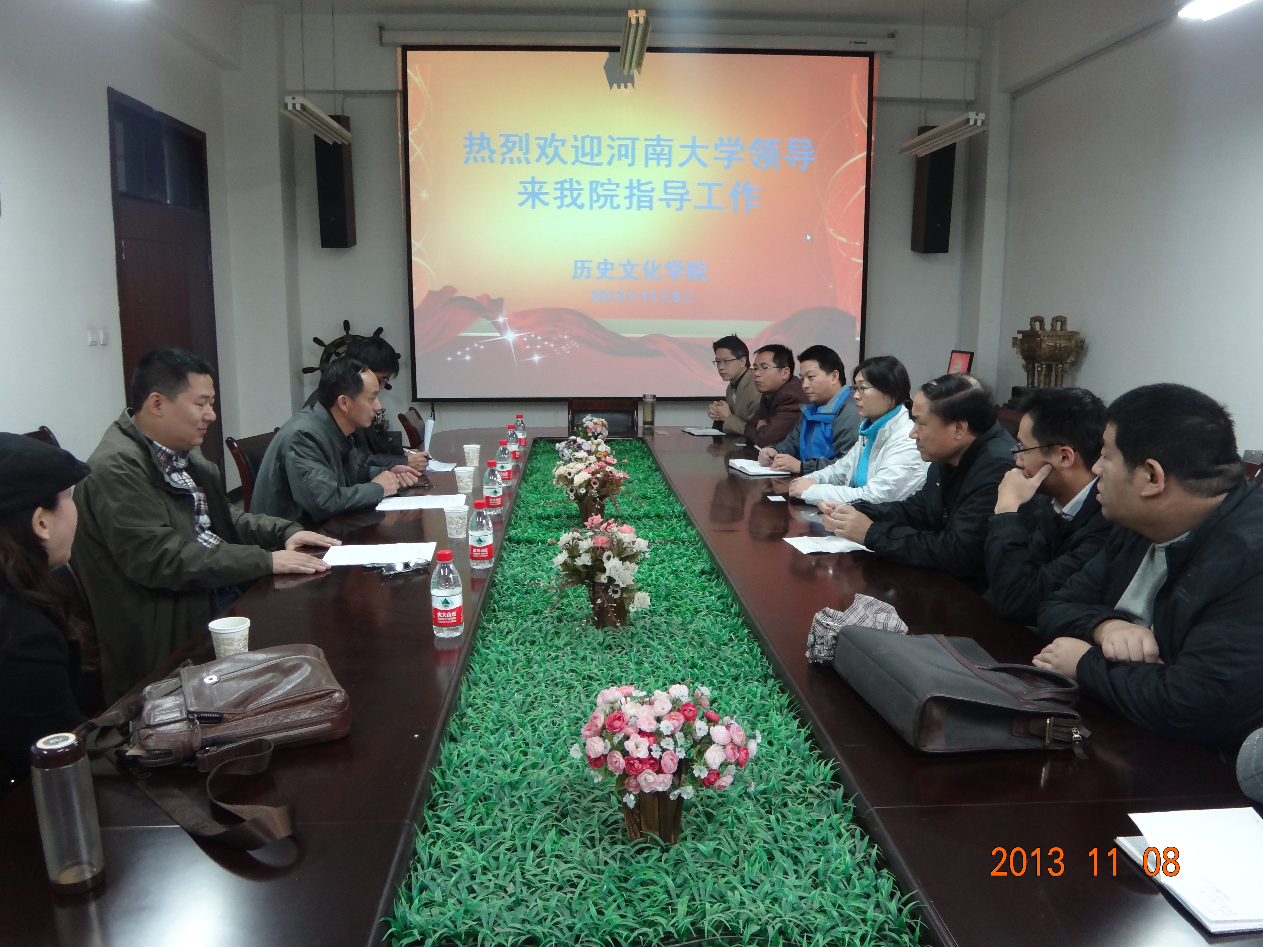 2013年11月8日上午,河南大学教务处副处长刘克辉教授、河南大学历史文化学院副院长张礼刚博士、世界史教研室主任史晓红博士及胡浩博士莅临伟德官网下载苹果版历史文化学院,就世界史学科的教学与研究进行调研。
