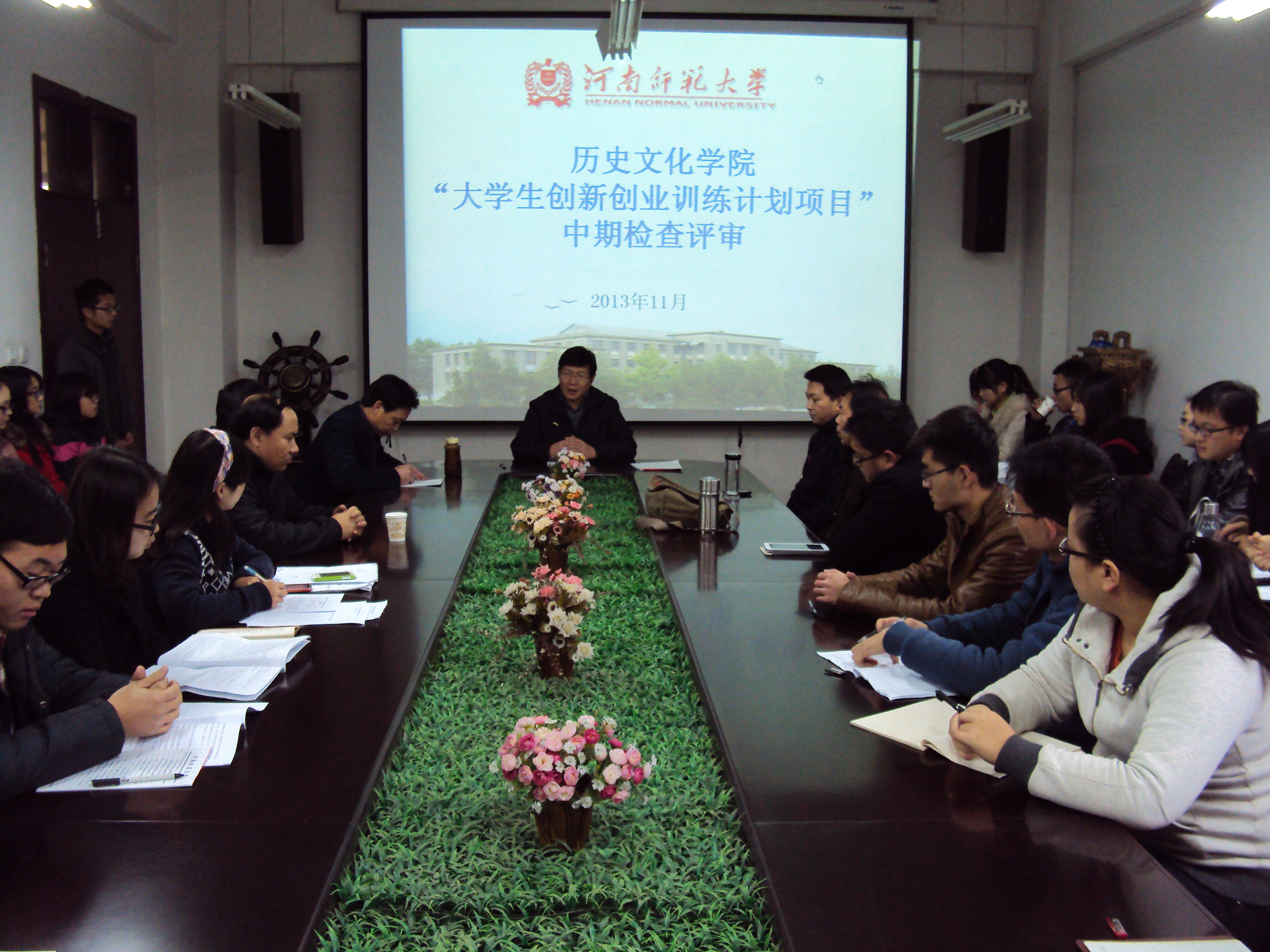 20131116日上午,历史文化学院在学院办公楼对2012年立项的“大学生创新创业训练计划”项目进行中期检查。本院七名老师和百余名项目组成员参与本次中期检查。