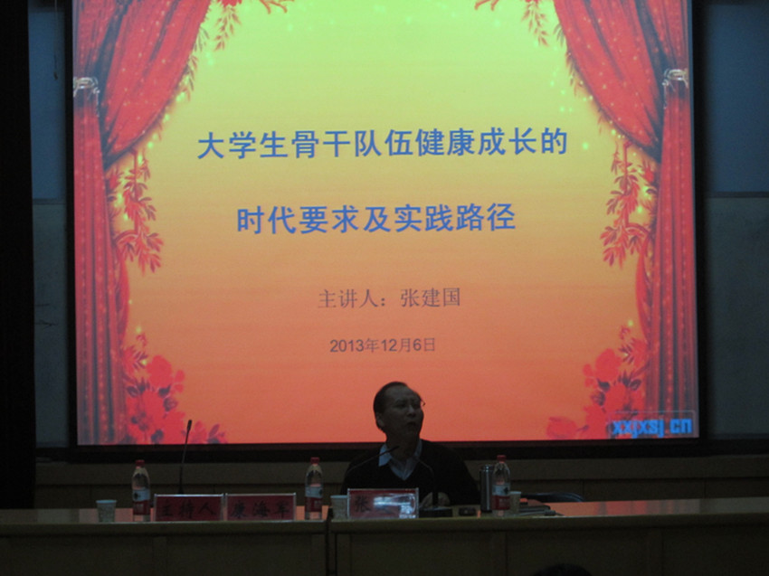 张部长围绕“大学生骨干队伍健康成长的时代要求及实践路径”这一主题,从大学生骨干所处的时代背景、社会对大学生骨干的基本要求和大学生骨干健康成长的具体路径三个方面进行了全面详细的讲解。他结合自身工作经验、人生阅历和美国见闻,引经据典,紧扣时事,鼓励青年学生要有历史使命感和国家荣誉感。他还提出青年学生应在理论学习、文化积淀、社会实践和务实创新等方面多做积累和提升。张部长深入浅出的讲话和语重心长的建议博得了到场师生的阵阵掌声。