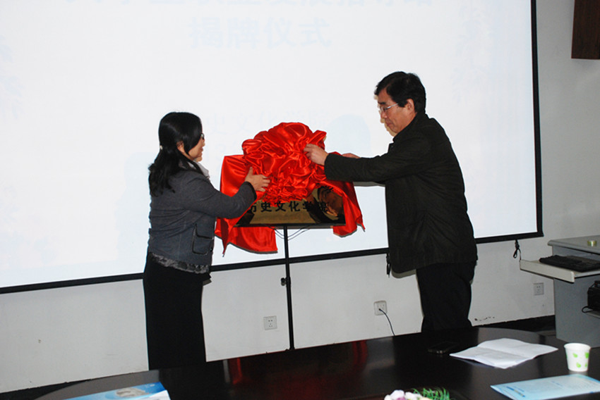 最后,我校副校长孙先科、历史文化学院党总支书记王霞共同为“大学生职业发展指导站”揭牌。仪式后,与会领导与师生共同参观了历史文化学院学生工作文化墙。