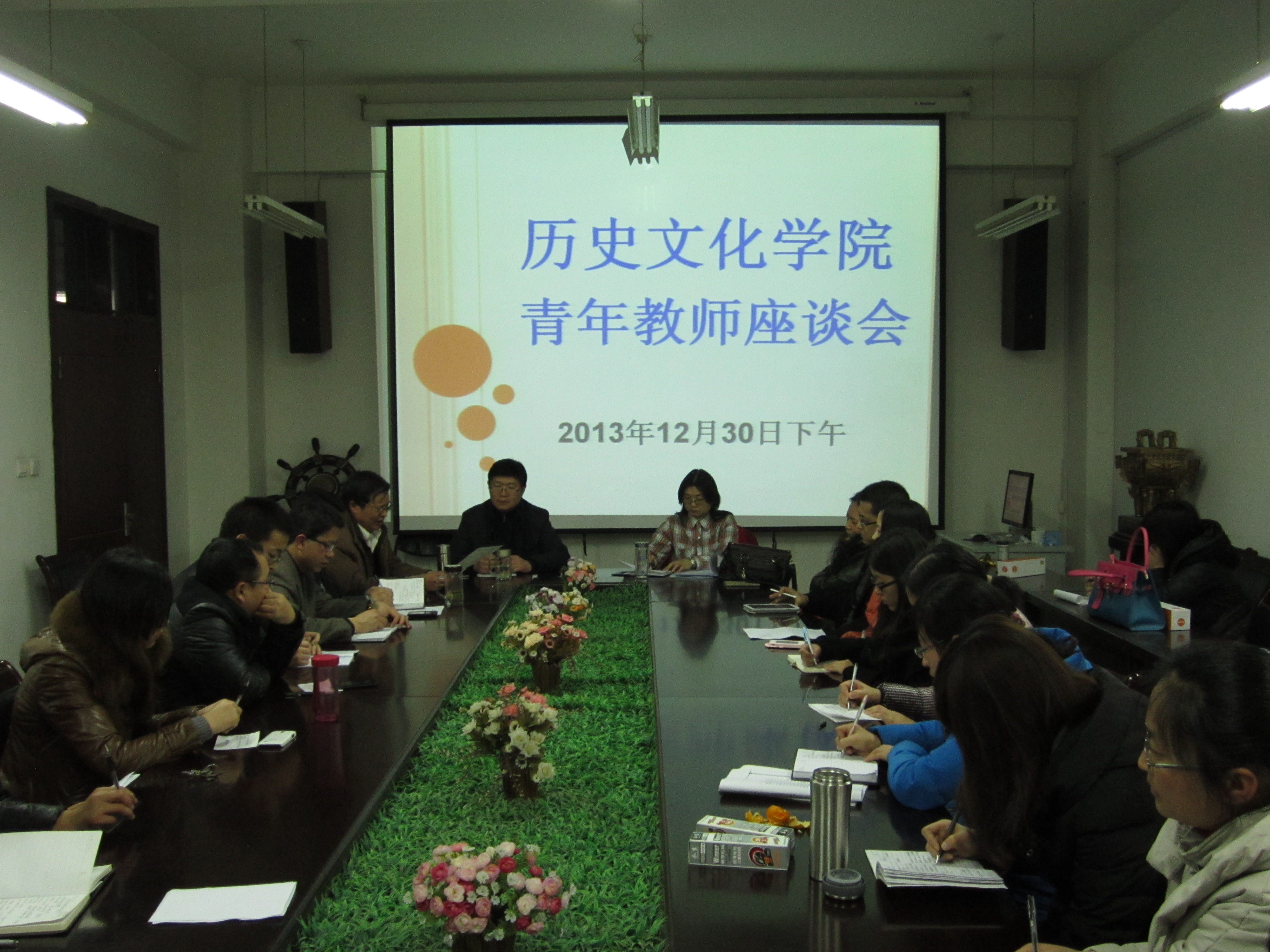 1230日下午,历史文化学院青年教师教学工作座谈会于学院小会议室举行,历史文化学院院长王记录教授、党总支书记王霞教授、副院长鞠明库博士、校教学督导员王盛恩教授、历史系牛琳老师等出席了此次会议,学院各系主任、青年教师共30余人参加了本次座谈会。