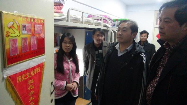 224日下午,洛阳师范学院团委书记郭天顺一行到我校参观考察公寓文化建设和公寓团建工作。校团委书记岳杰勇及历史文化学院学生工作负责人陪同考察。