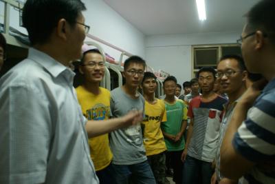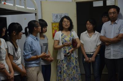 9月7号晚7:30,历史文化学院党总支书记王霞、副书记康海军、院长王记录、副院长巨明库、张壬、李峰带领团委书记张利兵,2012级辅导员李新艳,2013级辅导员张永富,王元元,2014级辅导员马雪娇,王玉雪等一行人亲临学生公寓,与同学展开亲切的交流与慰问.