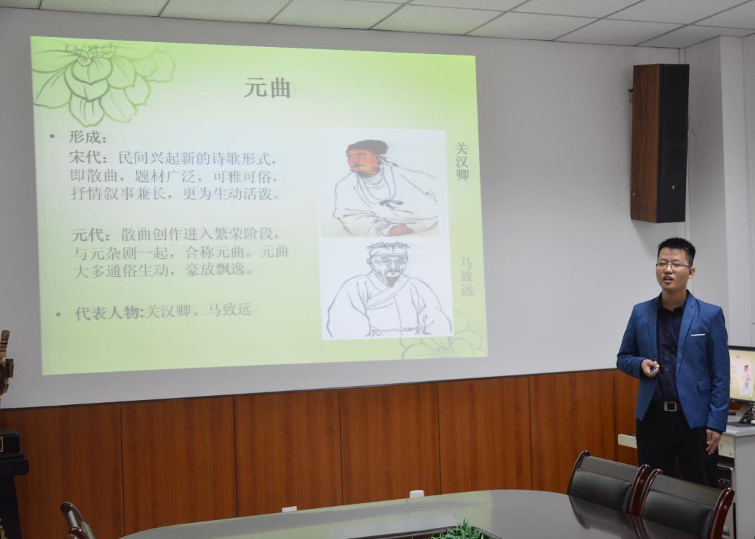 此次比赛共有13名同学参赛,他们是班级中教学技能方面的佼佼者。正式比赛开始后,同学们或以温习旧课导入新课,或以古典诗词步入正题。在讲授过程中,同学们或慷慨激昂地朗诵《大江东去》,或婉约深情地浅唱《明月几时有》,配以精美图片,引人入胜。在小结环节,或以布置作业,或以提出问题等完美收宫。