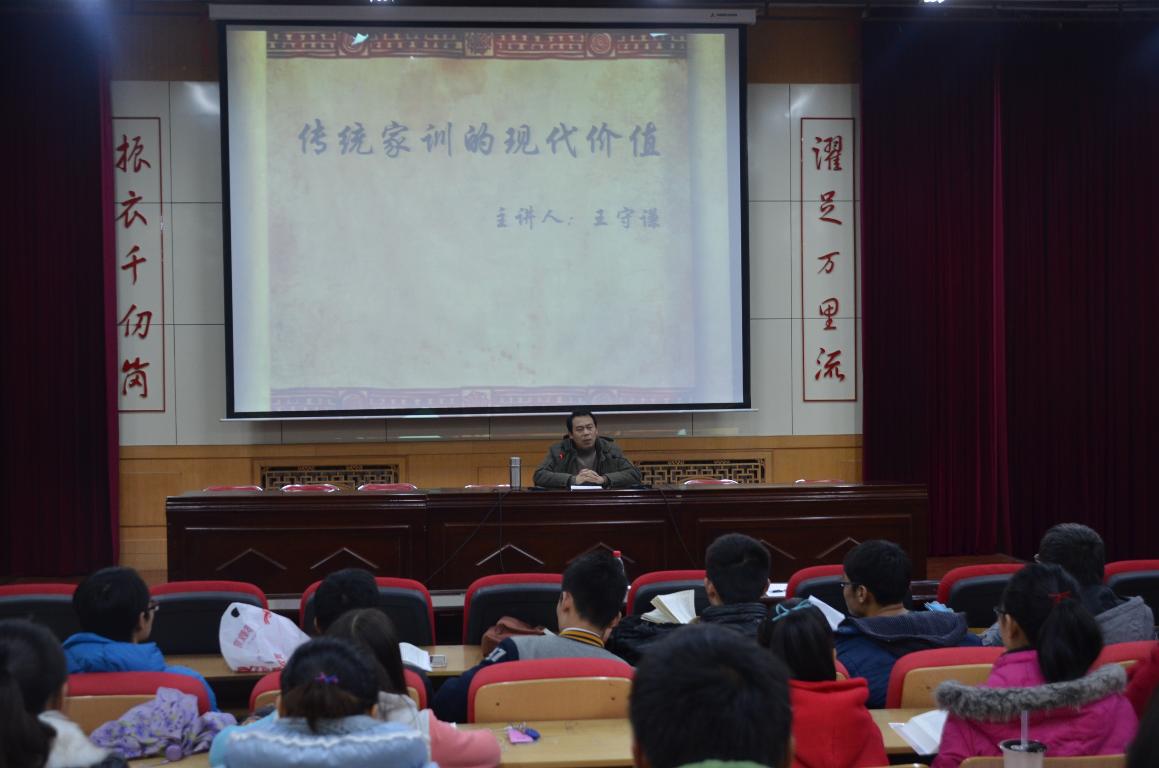 11月29日晚,习家训敦行励品,讲继承传德扬善为主题的我校第十四期道德讲堂宣讲活动,在学苑餐厅三楼“道德讲堂”举行。此次“道德讲堂”由校文明委主办,历史文化学院承办。学院400余名学生参与了此次活动