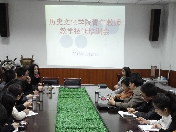 324日晚,为迎接学校第三届青年教师教学技能大赛,历史文化学院在学院二楼小会议室举办了青年教师教学技能培训会,会议由鞠明库副院长主持,邀请我院教学比赛指导经验丰富的牛琳老师主讲,王霞书记以及近20名青年教师出席培训会。